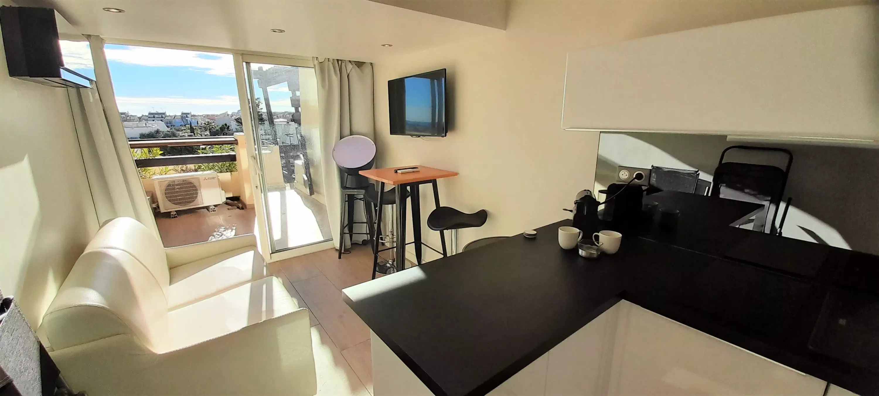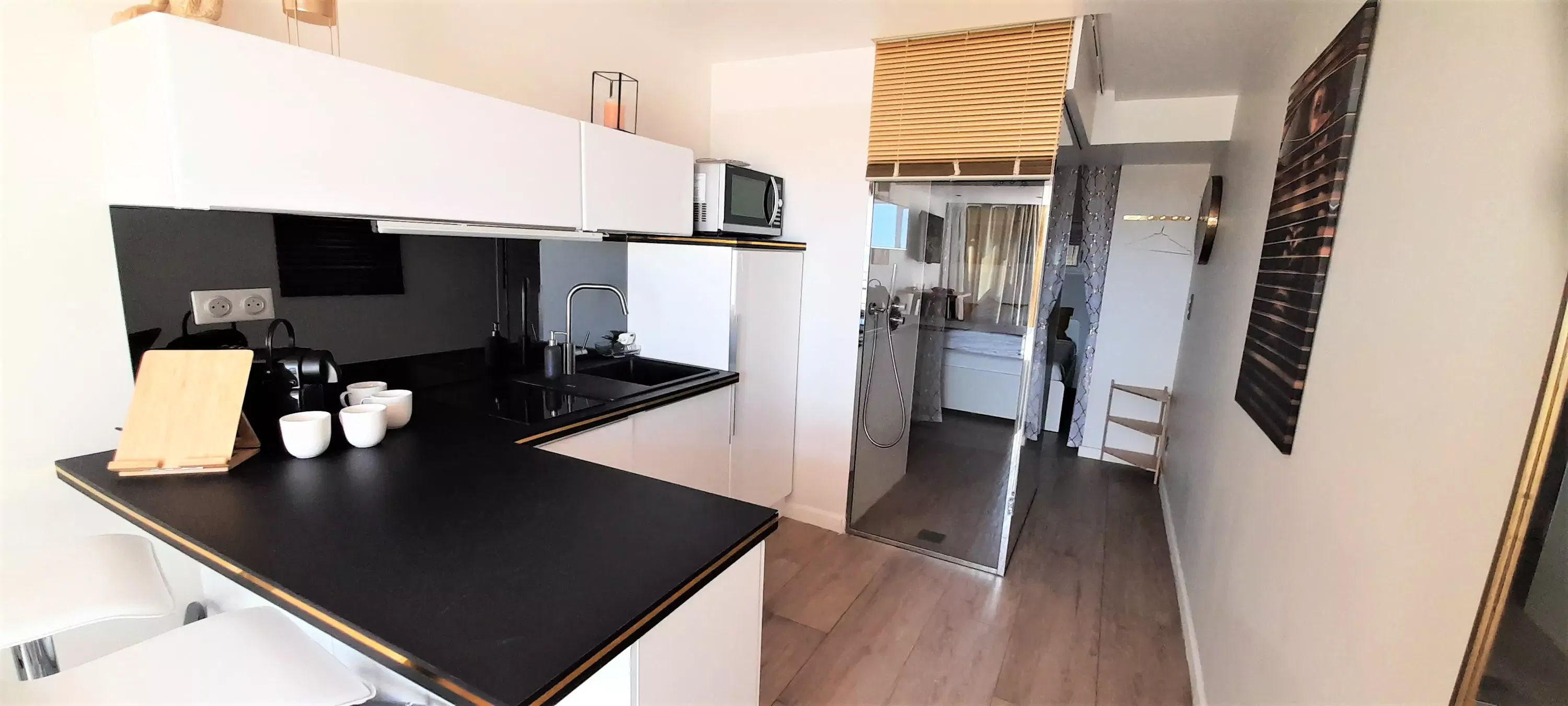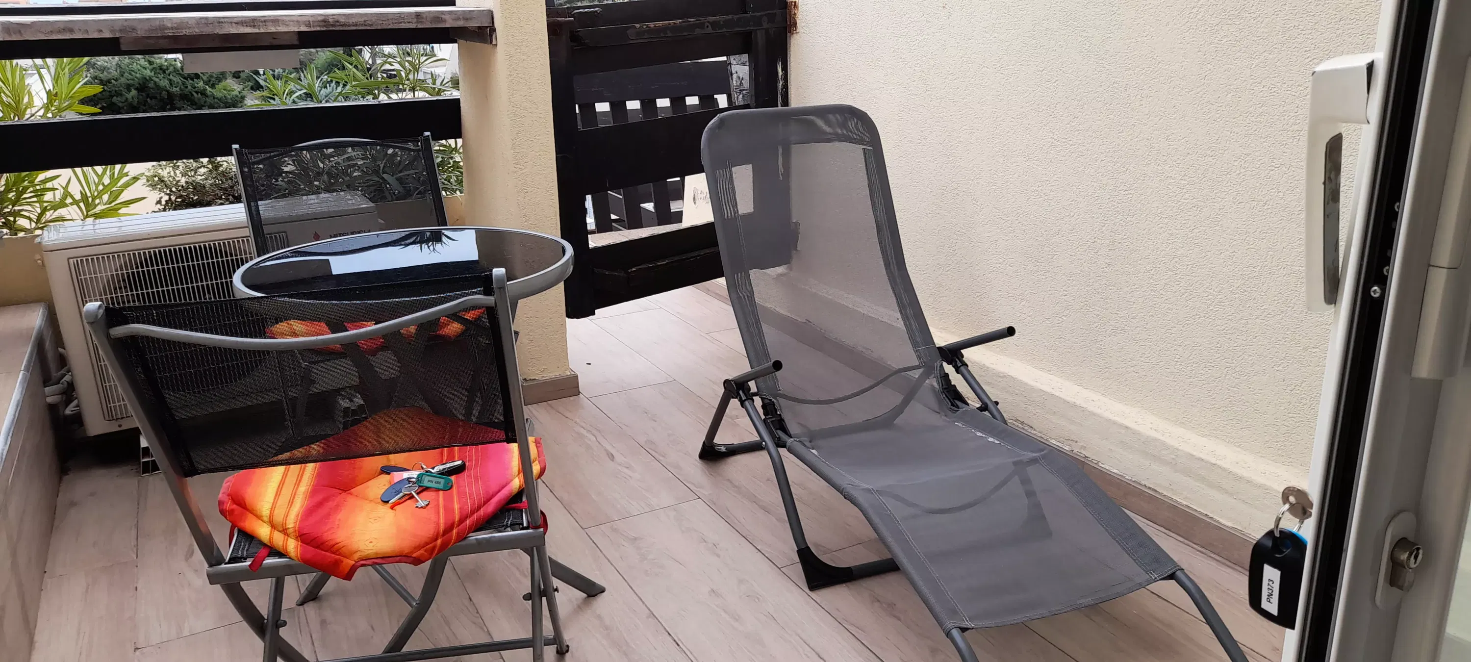 Lovely air-conditioned apartment for 2 people in Port Nature colline 3 on the 2nd floor without elevator, along the corridor. South facing. A bedroom area with a 160 cm bed. Kitchen area with a large refrigerator, dishwasher, microwave, Nespresso coffee maker, television, safe and vacuum cleaner. Sea view. Terrace. Parking n° 3318.