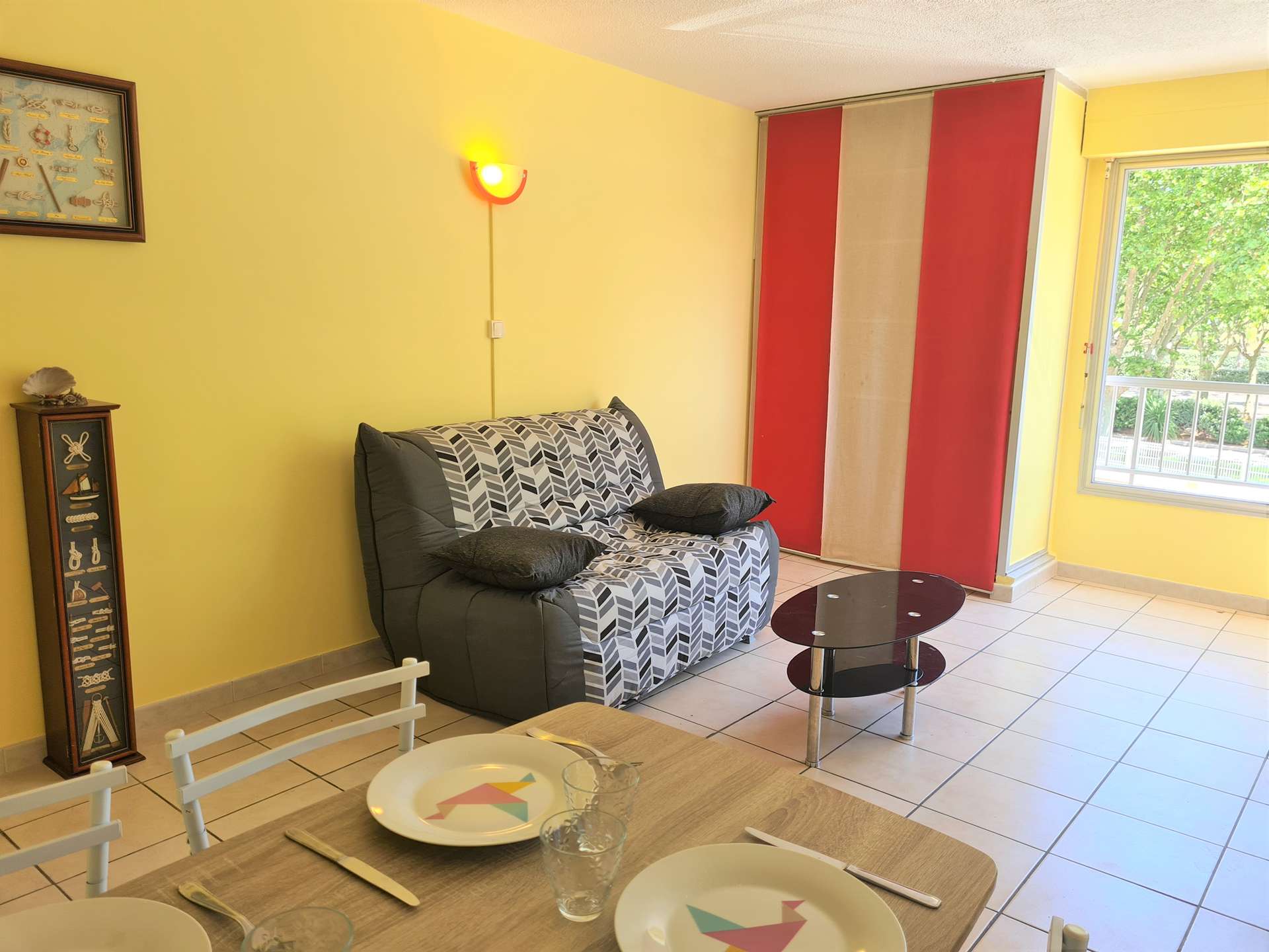 Cap d'Agde (34) - Quartier Port - Résidence Le Pharo 2-room apartment - approximately 41 m² - up to 4 people. Accommodation: This holiday apartment, located on the 2nd floor with lift, includes a living room with a sofa bed, a separate bedroom with 1 double bed, a fitted kitchen area and a shower room. The advantages of this rental: The accommodation is pleasantly bright and spacious. You have a nice bedroom with a built-in wardrobe. Practical information: A bus stop is located near the accommodation, which will allow you to travel throughout the resort of Cap d'Agde. Please note: swimming pool opening subject to changes linked to the COVID-19 situation. End of stay cleaning included.