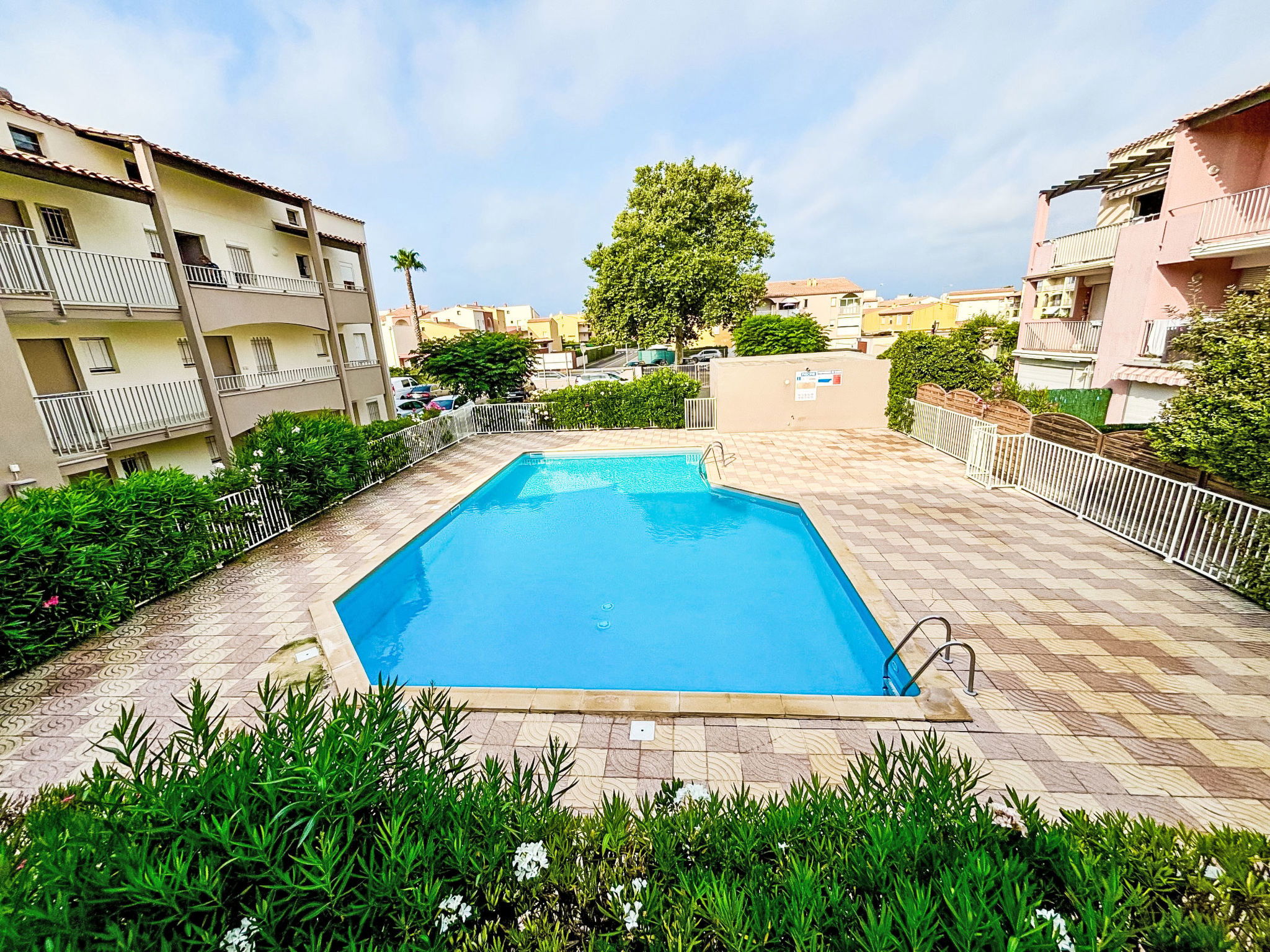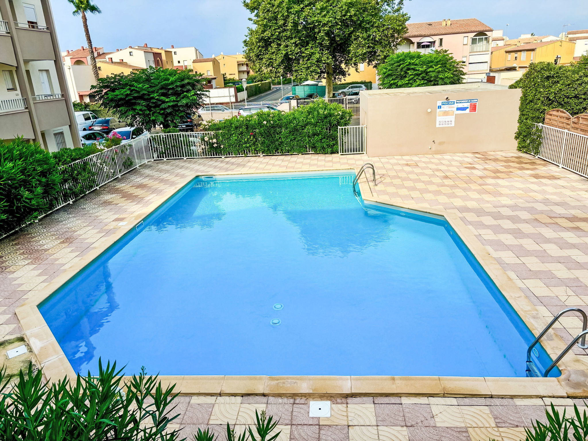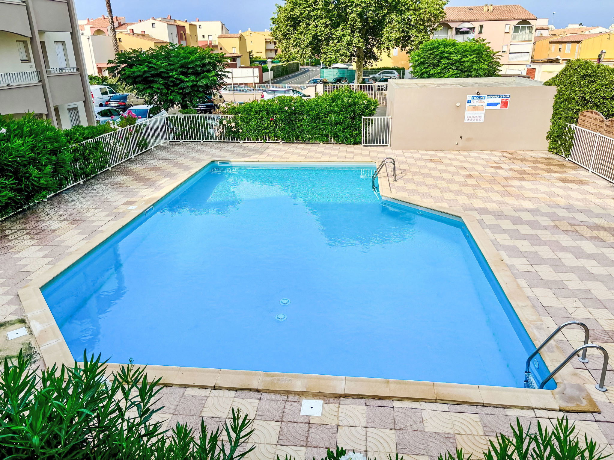 Residence "Les Grenadines", 2 storeys. In the district of Richelieu, in the centre, in the residential district, 400 m from the sea, 400 m from the beach. For shared use: swimming pool (12 x 7 m, seasonal availability: 15.May. - 30.Sep.). Parking at the house, public parking on the road. Shop, grocery 300 m, supermarket 2 km, restaurant 300 m, bus stop "Pacifique" 270 m, sandy beach "Le Richelieu" 400 m, park "Aquapark" 1 km. Sports harbour 2 km. Nearby attractions: Aqualand 1 km, Dinoland 1.5 km, Aquarium du Bagnas 1 km, Ile Saint-Martin 2 km, Portiragnes 15 km, Beziers 30 km. Please note: car recommended. Due to COVID-19, the pool of the residence is not available during summer 2020.