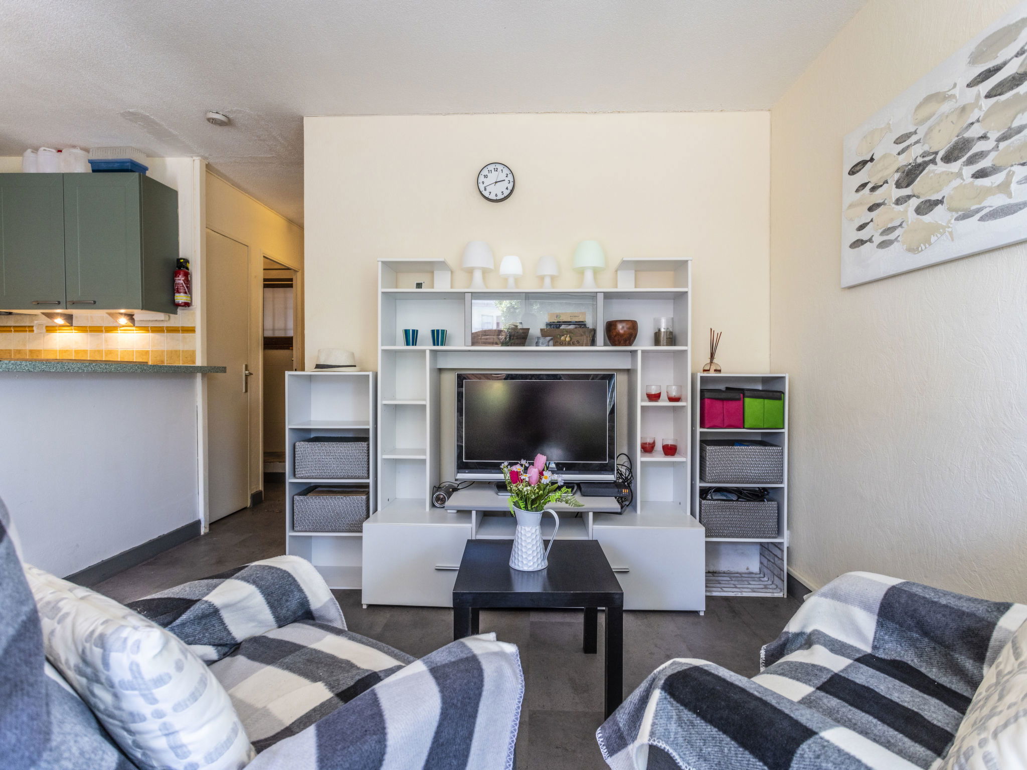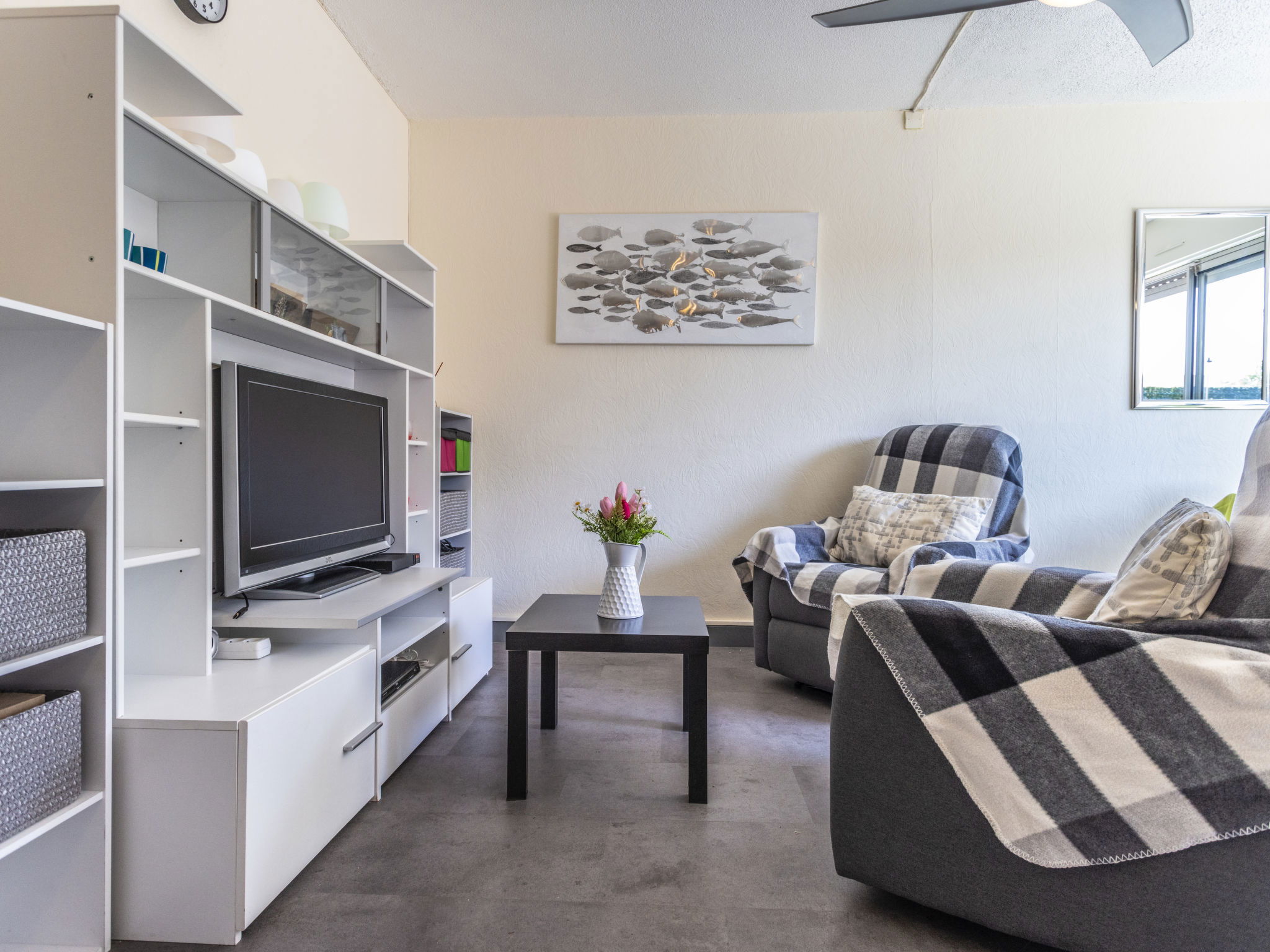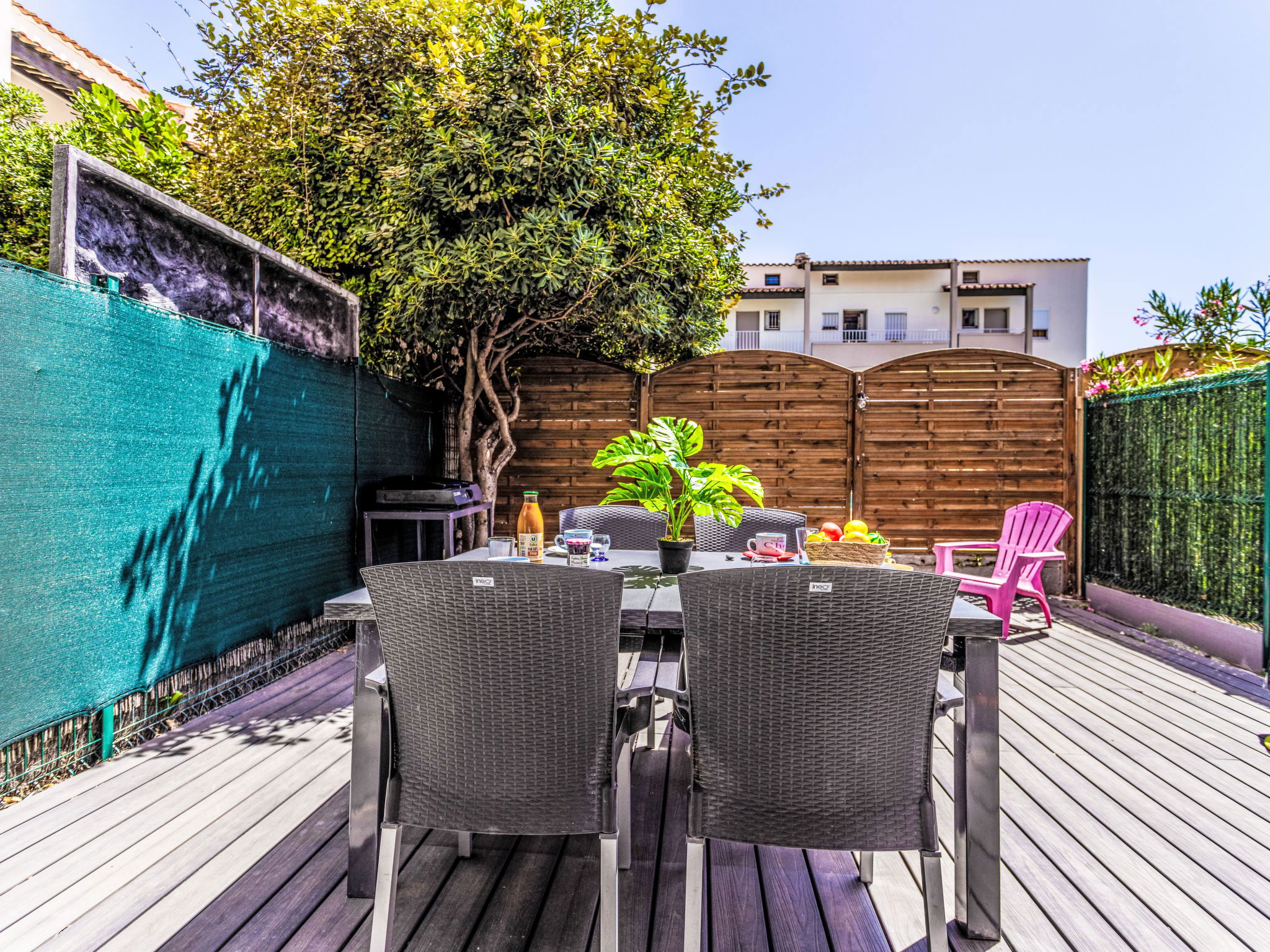 Residence "Les Grenadines", 2 storeys. In the district of Richelieu, in the centre, in the residential district, 400 m from the sea, 400 m from the beach. For shared use: swimming pool (12 x 7 m, seasonal availability: 15.May. - 30.Sep.). Parking at the house, public parking on the road. Shop, grocery 300 m, supermarket 2 km, restaurant 300 m, bus stop "Pacifique" 270 m, sandy beach "Le Richelieu" 400 m, park "Aquapark" 1 km. Sports harbour 2 km. Nearby attractions: Aqualand 1 km, Dinoland 1.5 km, Aquarium du Bagnas 1 km, Ile Saint-Martin 2 km, Portiragnes 15 km, Beziers 30 km. Please note: car recommended. Due to COVID-19, the pool of the residence is not available during summer 2020.