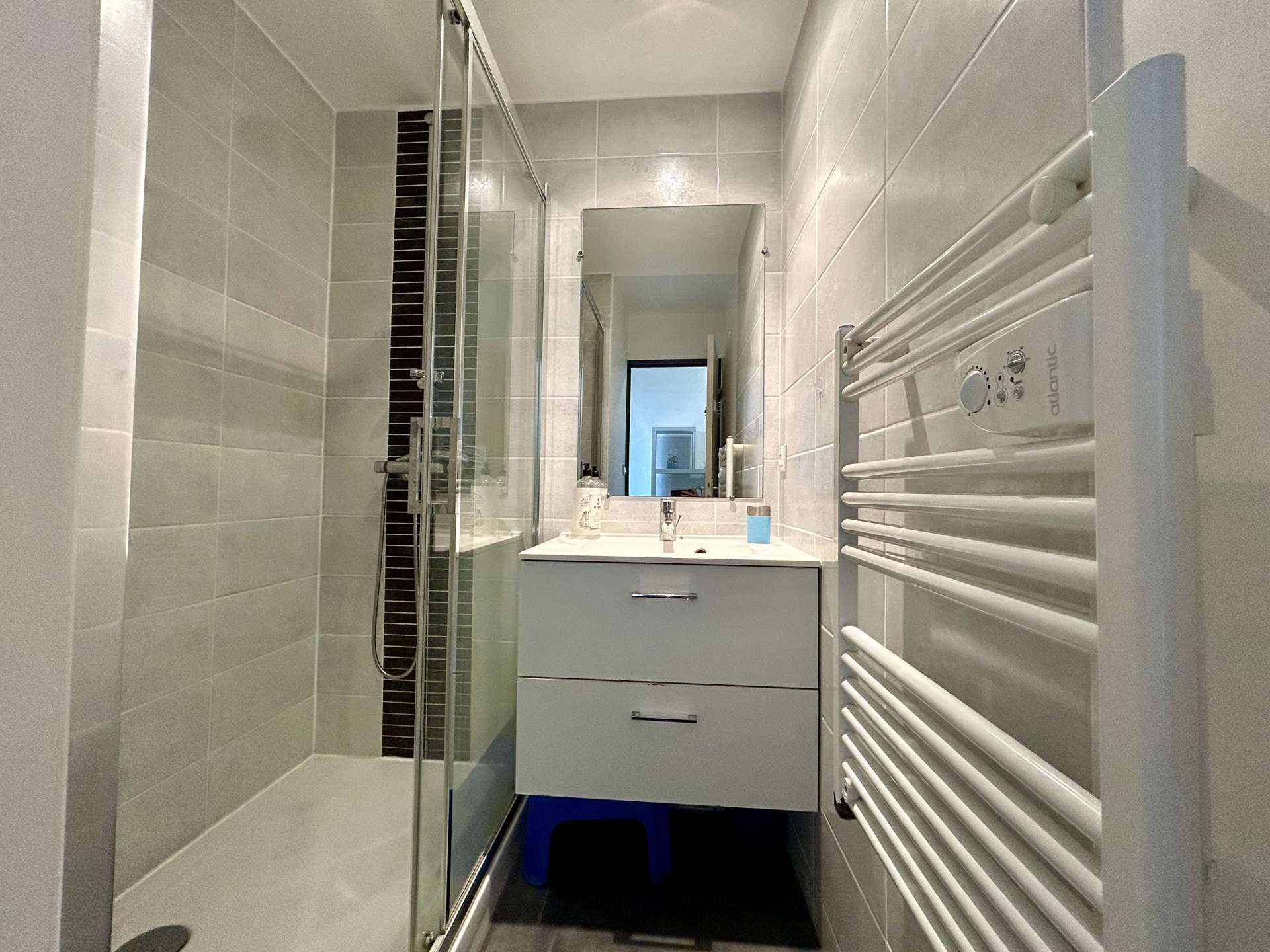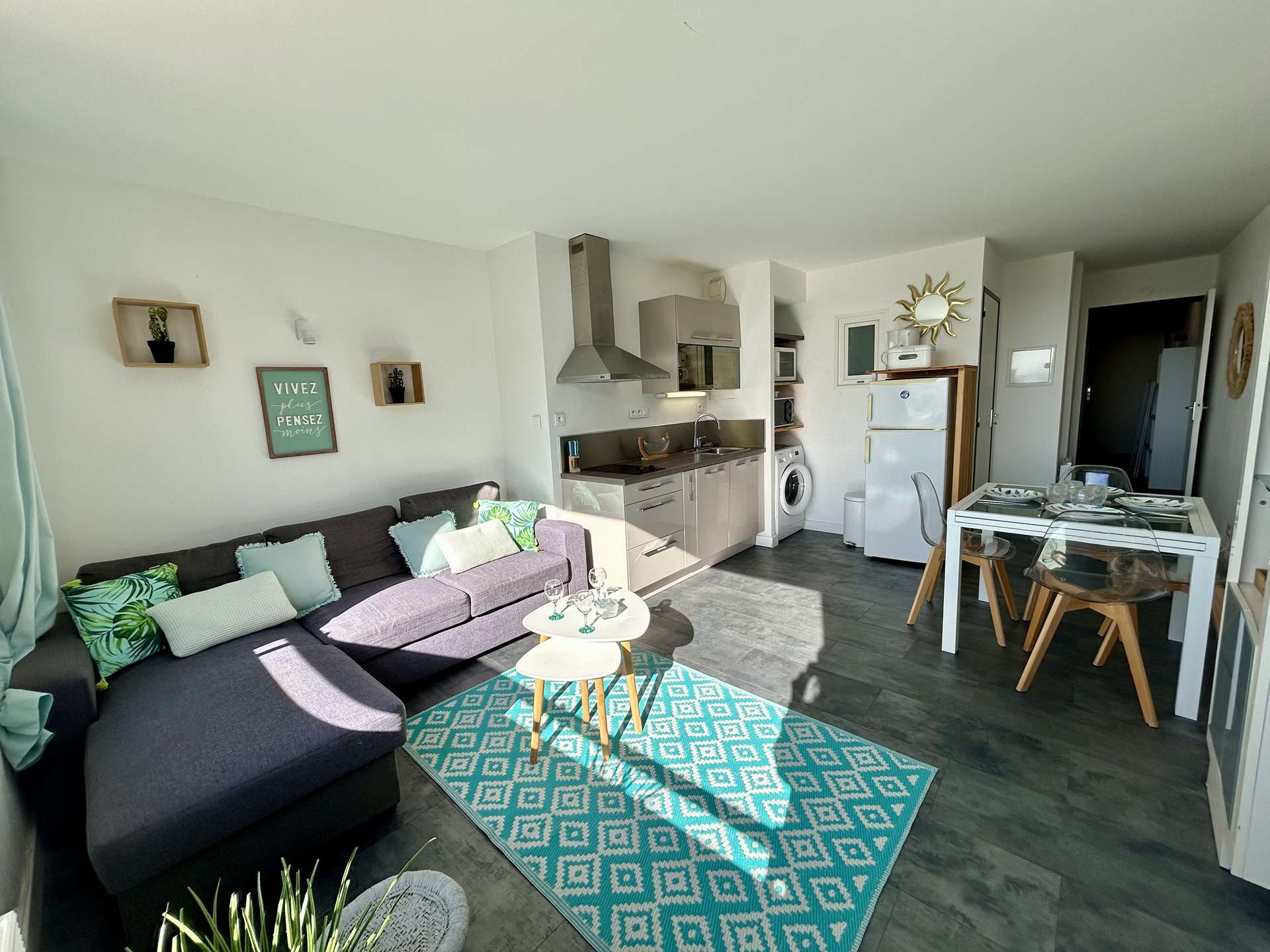 Vous pourrez stationner facilement votre véhicule à proximité immédiate du logement, sur le parking de la résidence. Une baie vitrée vous permet de profiter d’une vue imprenable sur la mer.