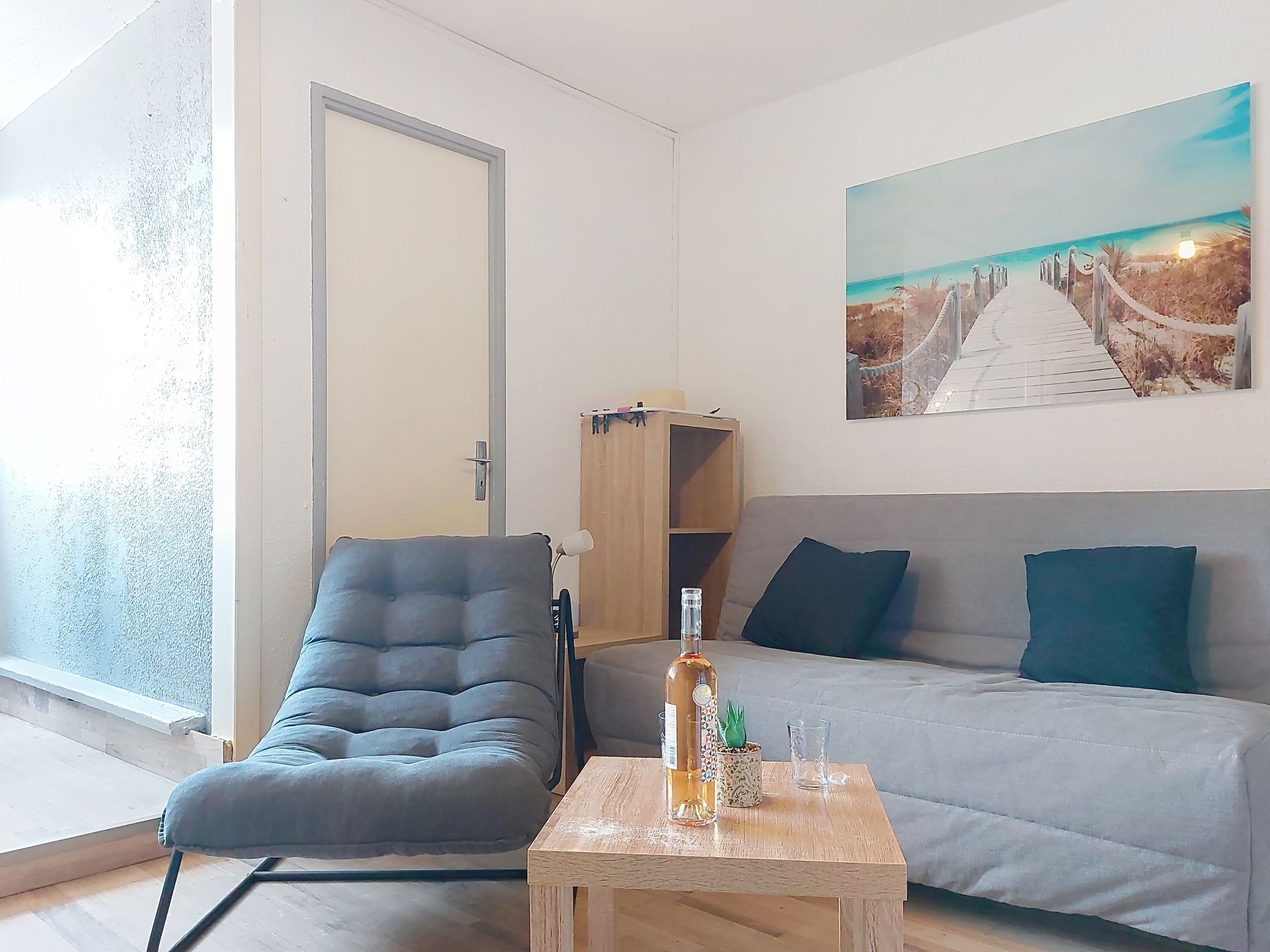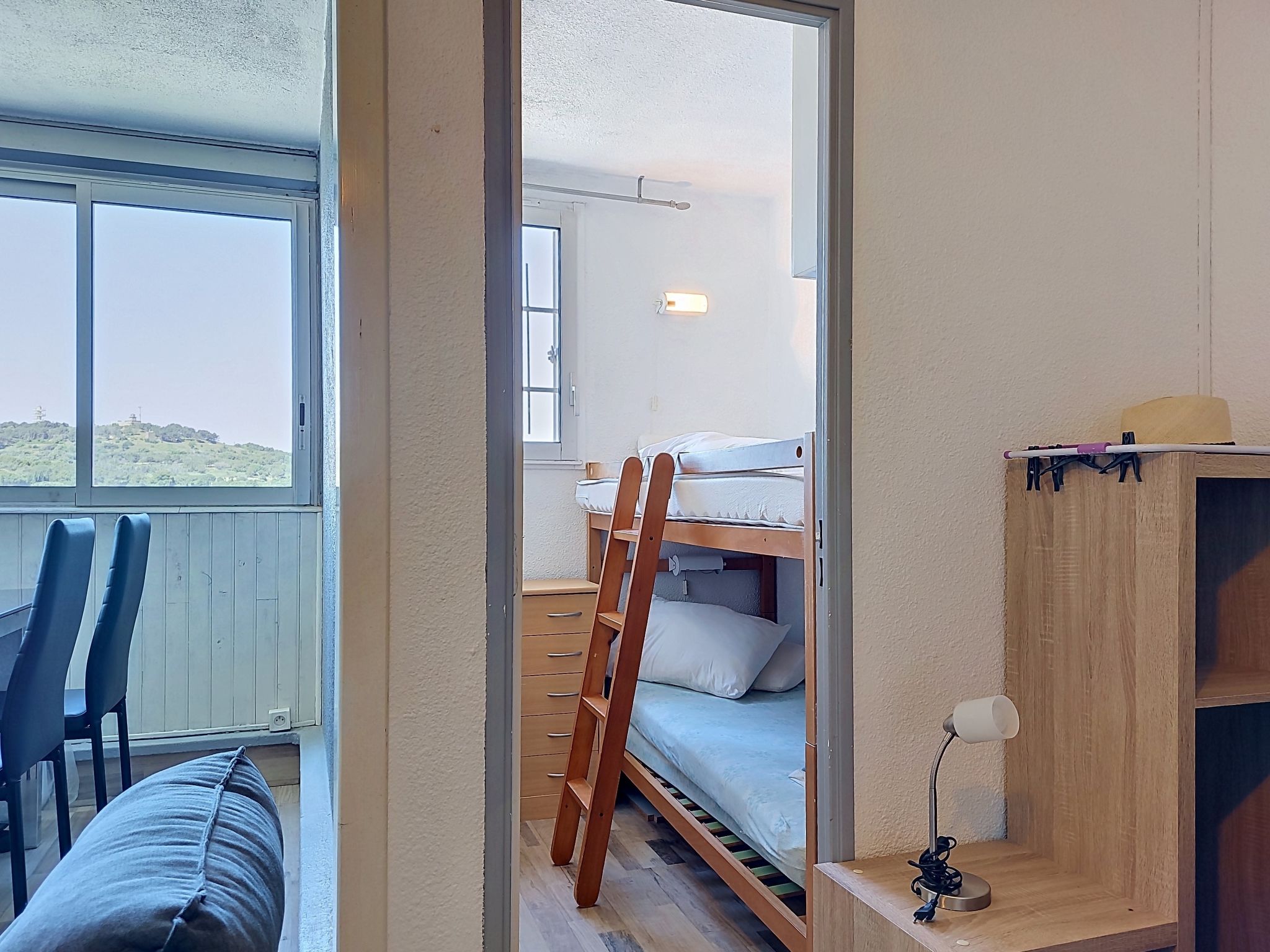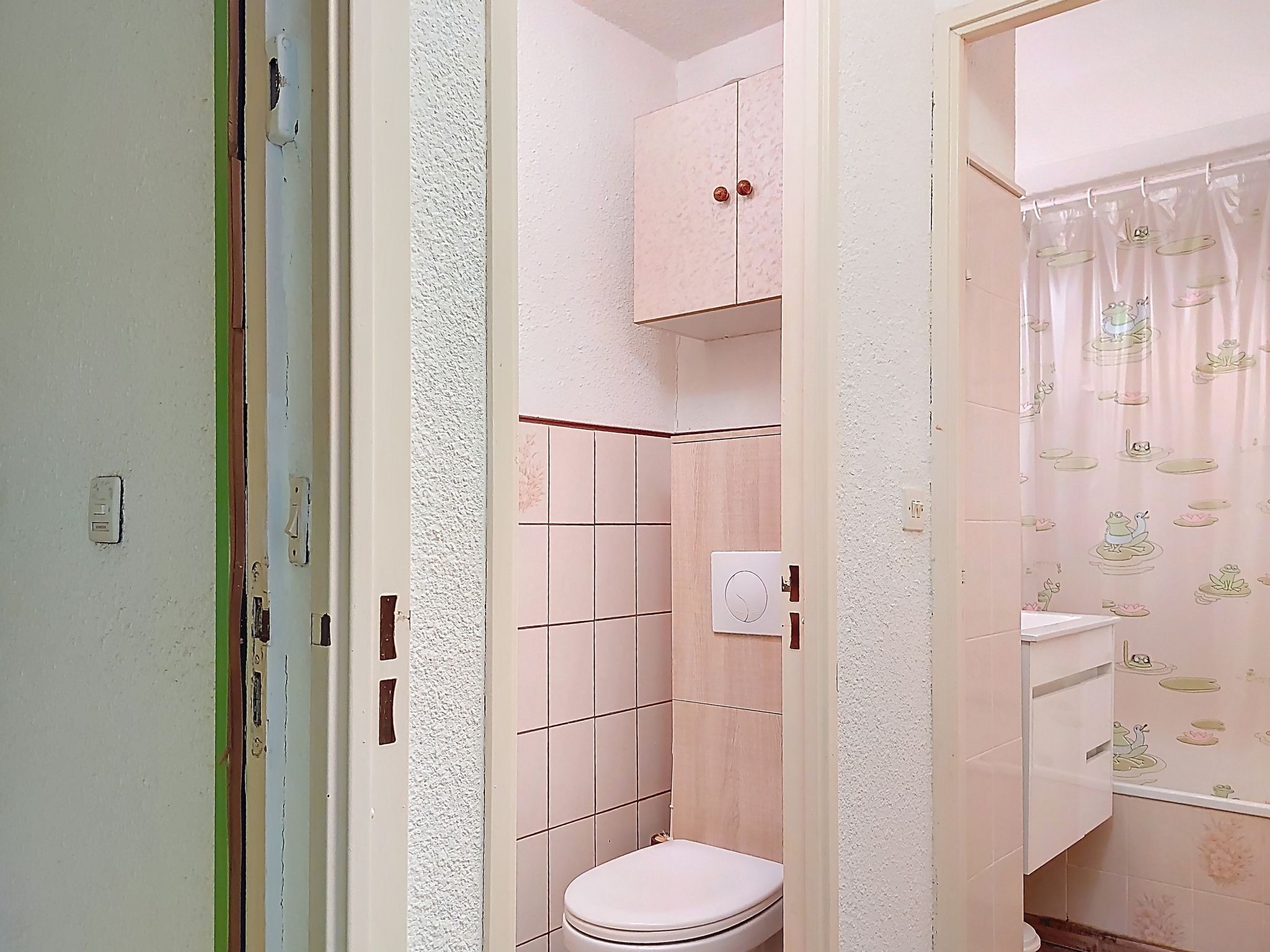 1-room studio 27 m2 on 3rd floor. Practical furnishings: living/dining room with 1 double sofabed (140 cm, length 190 cm), TV (flat screen), air conditioning. Exit to the loggia. Sleeping alcove with 1 x 2 bunk beds (90 cm, length 190 cm). Open kitchen (microwave, electric coffee machine). Bathroom, sep. WC. Offer by a private individual according to Art. 155, IV of CGI.
