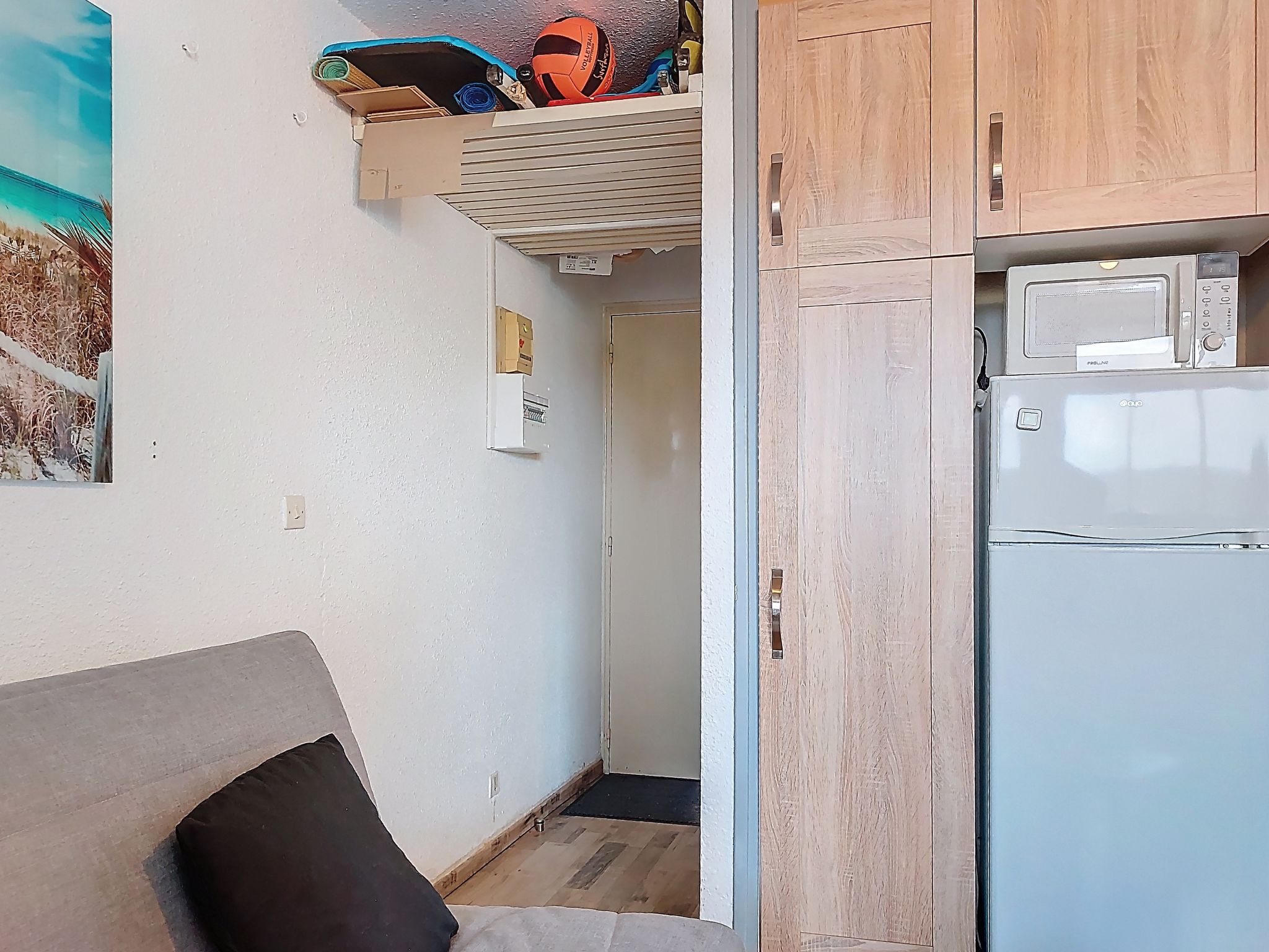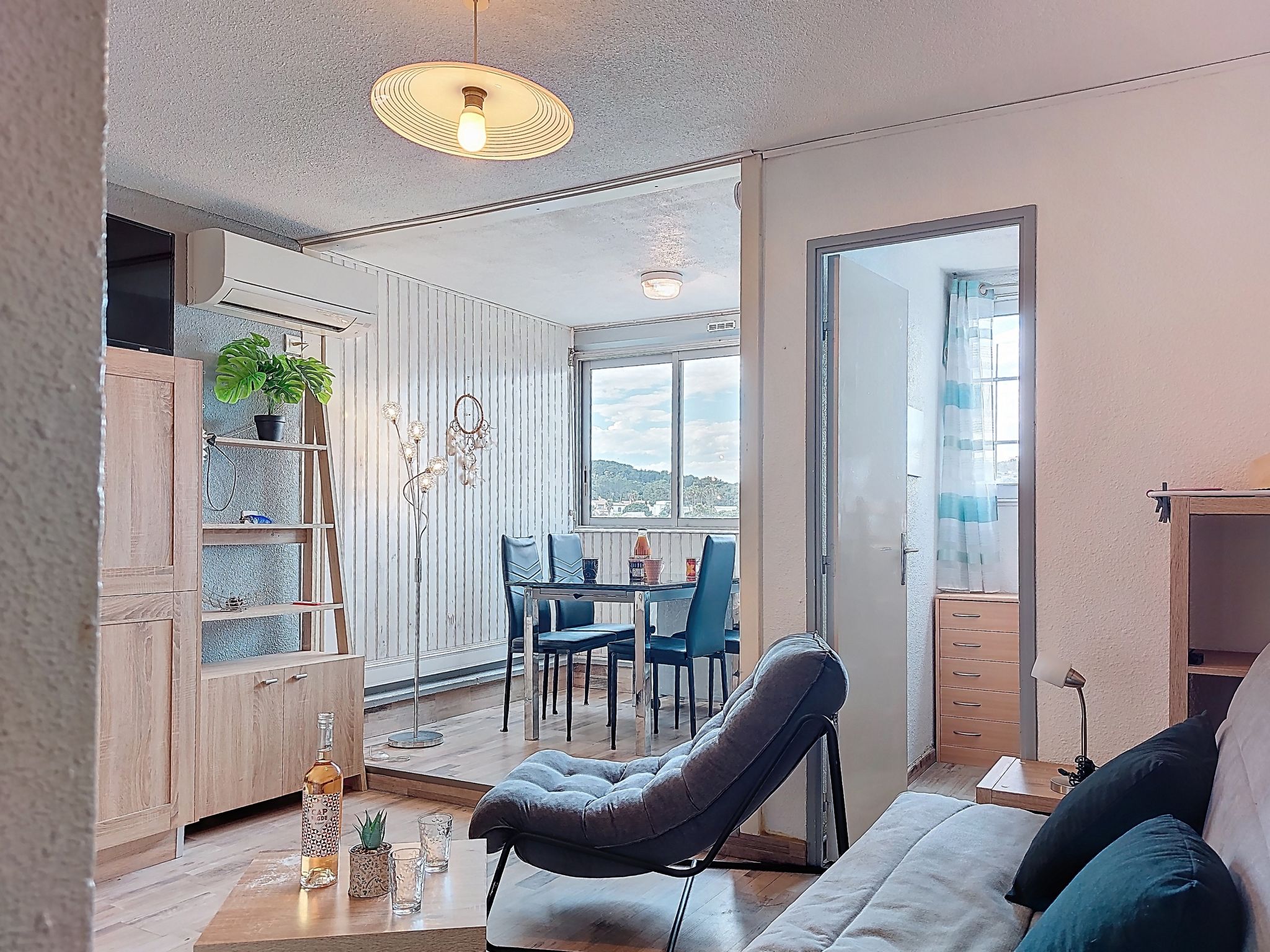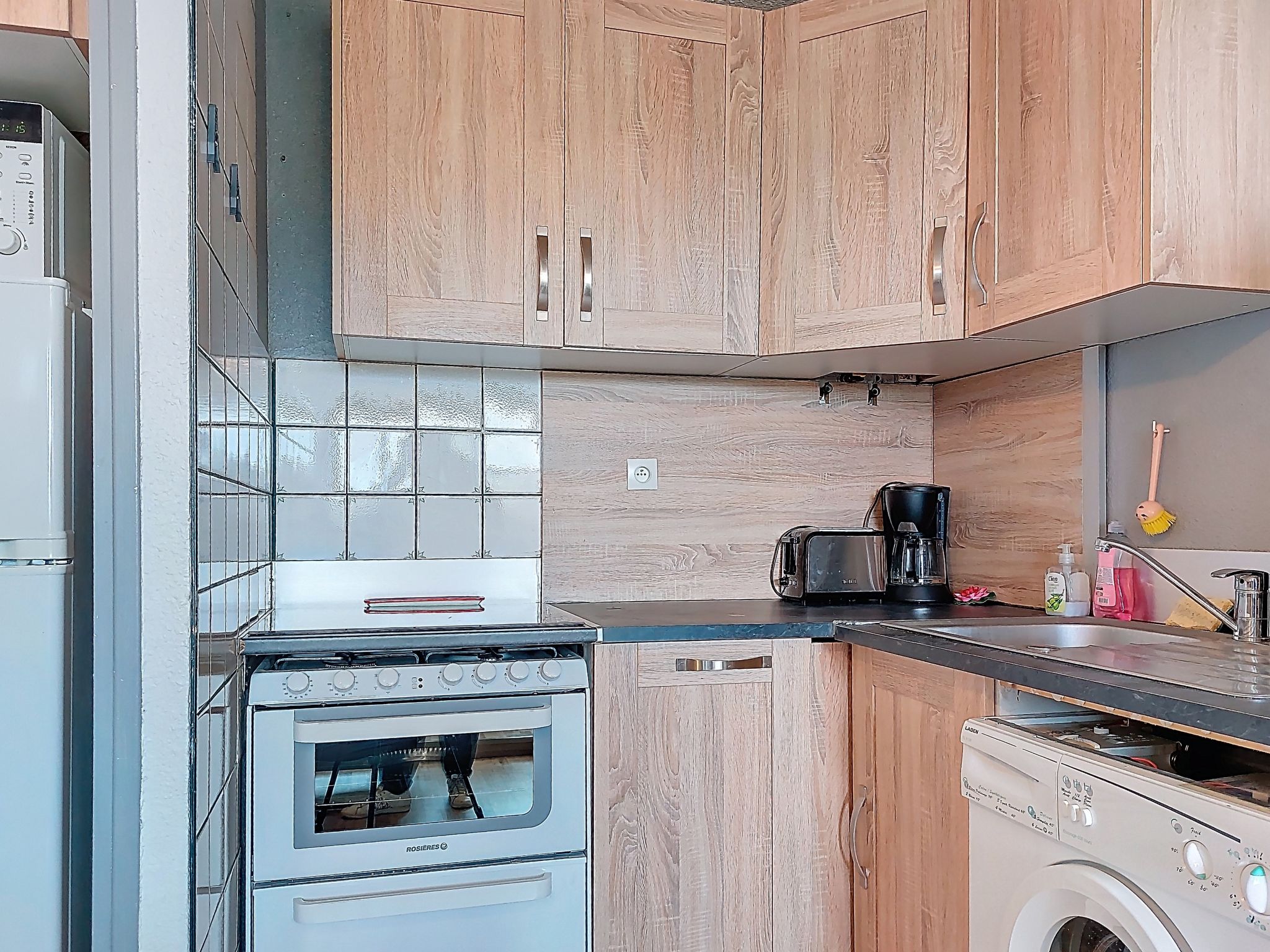1-room studio 27 m2 on 3rd floor. Practical furnishings: living/dining room with 1 double sofabed (140 cm, length 190 cm), TV (flat screen), air conditioning. Exit to the loggia. Sleeping alcove with 1 x 2 bunk beds (90 cm, length 190 cm). Open kitchen (microwave, electric coffee machine). Bathroom, sep. WC. Offer by a private individual according to Art. 155, IV of CGI.