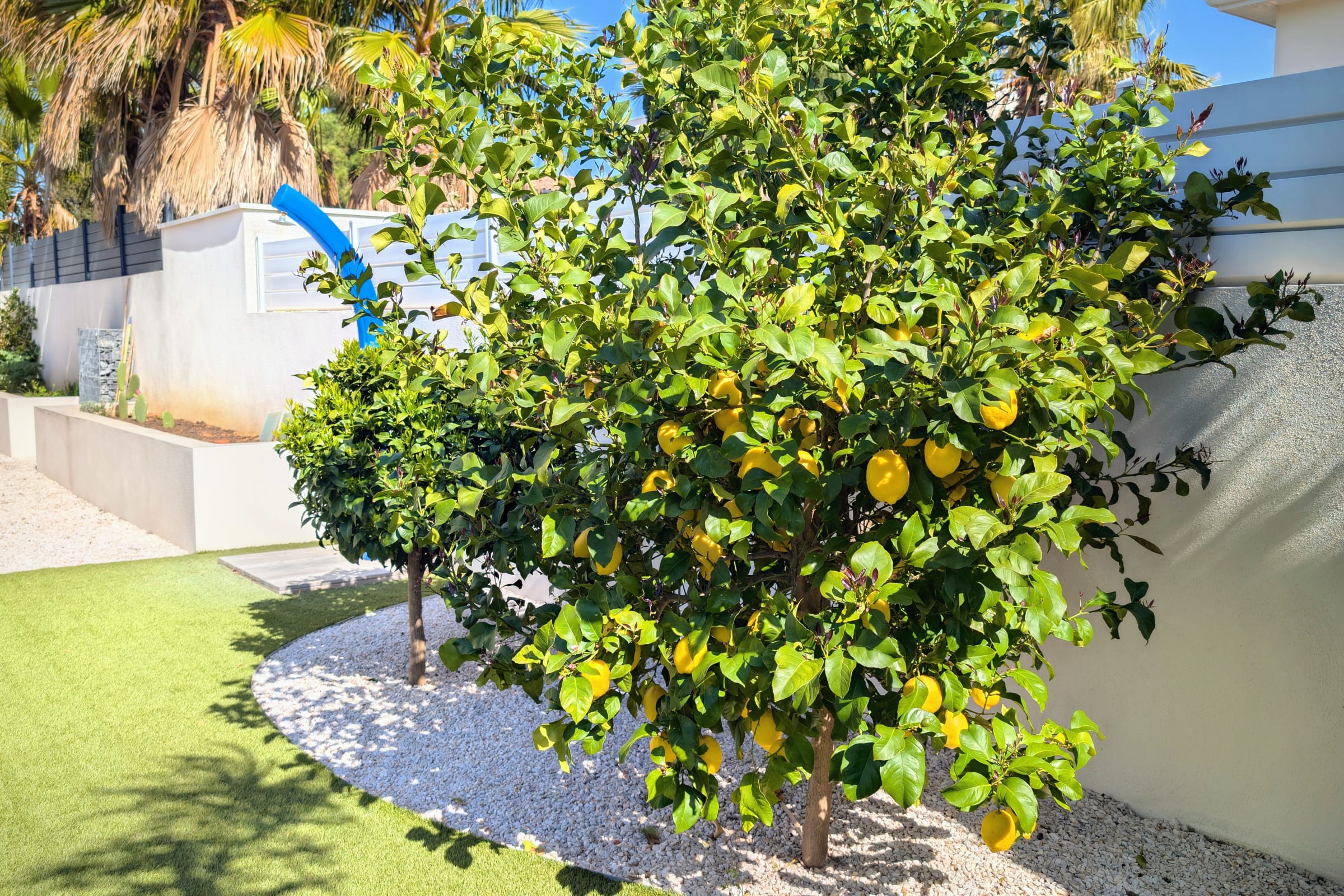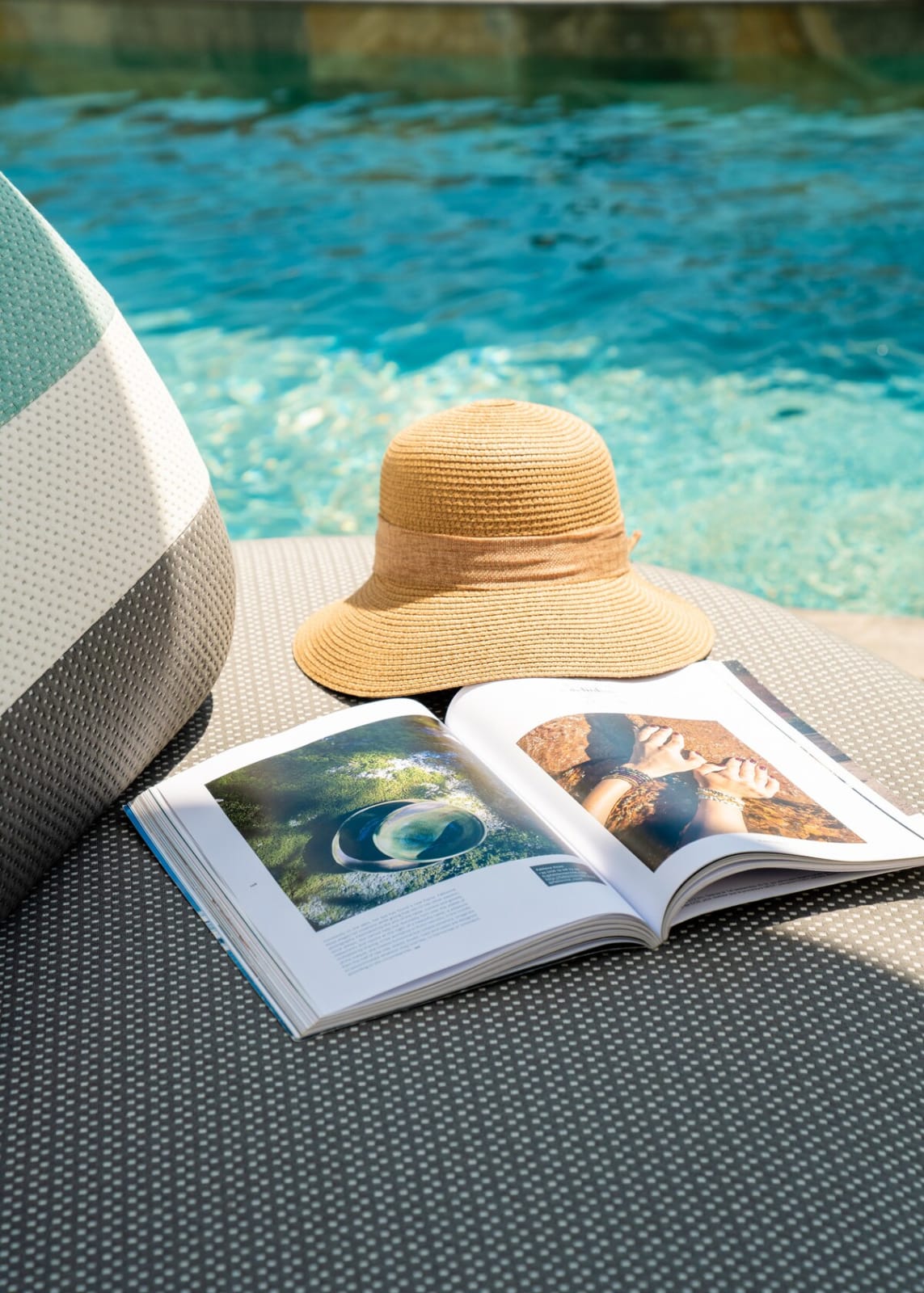 The beautifully landscaped garden offers a private pool, summer lounge, sunbeds, and a small herb garden to enhance your meals with fresh flavors.