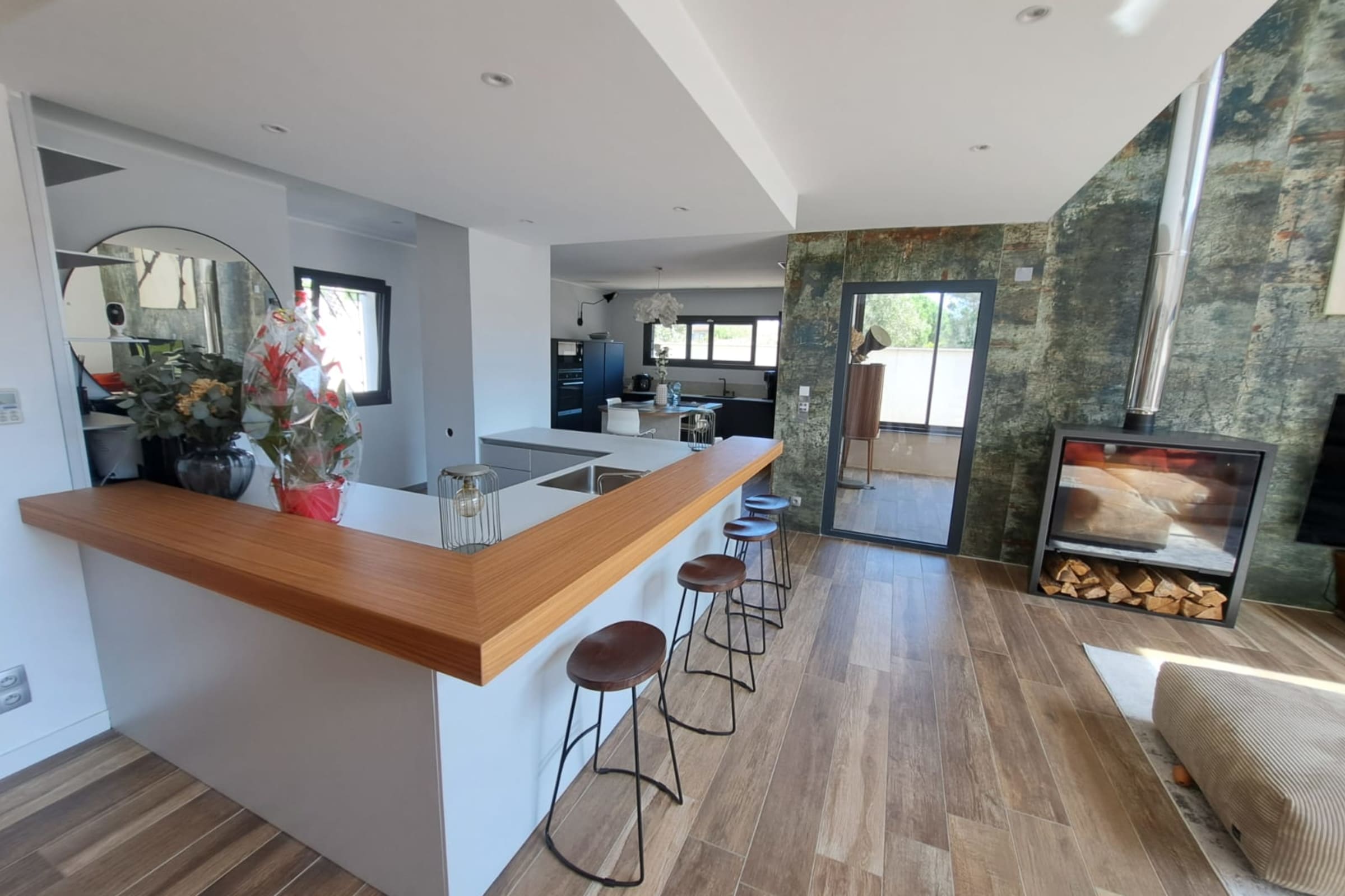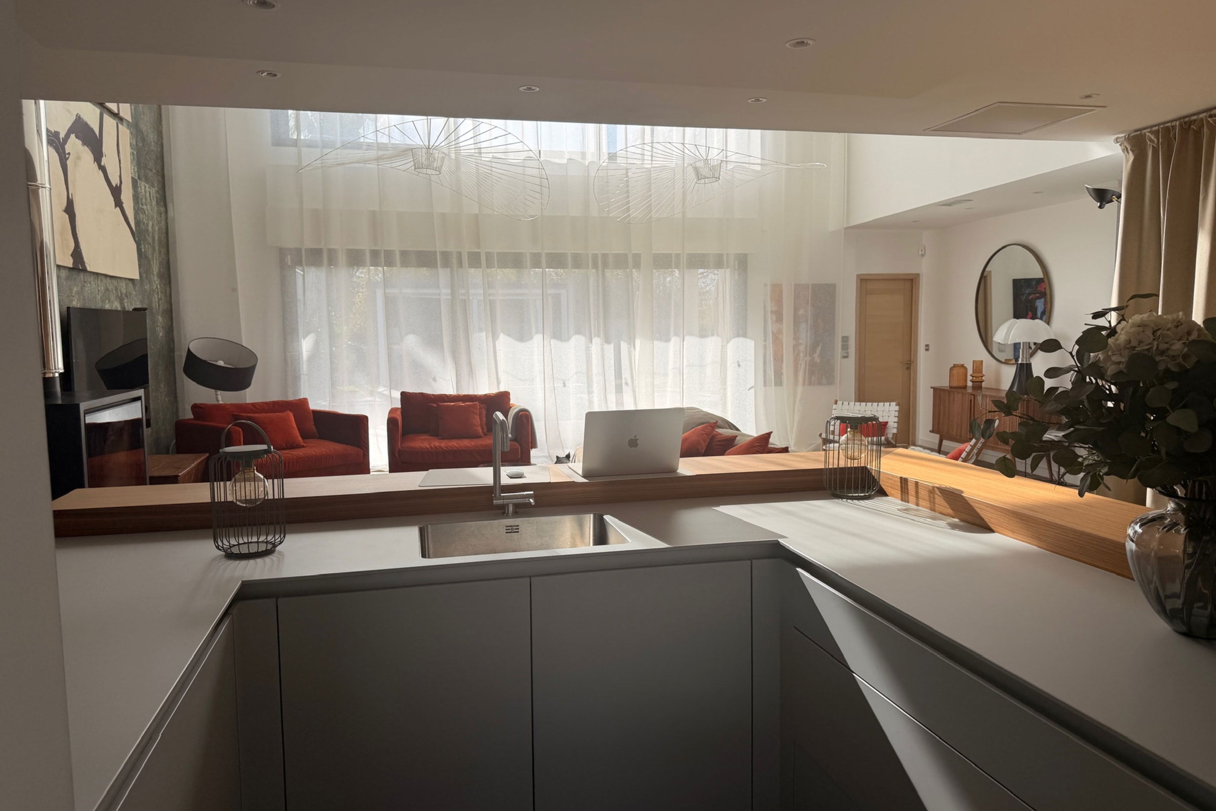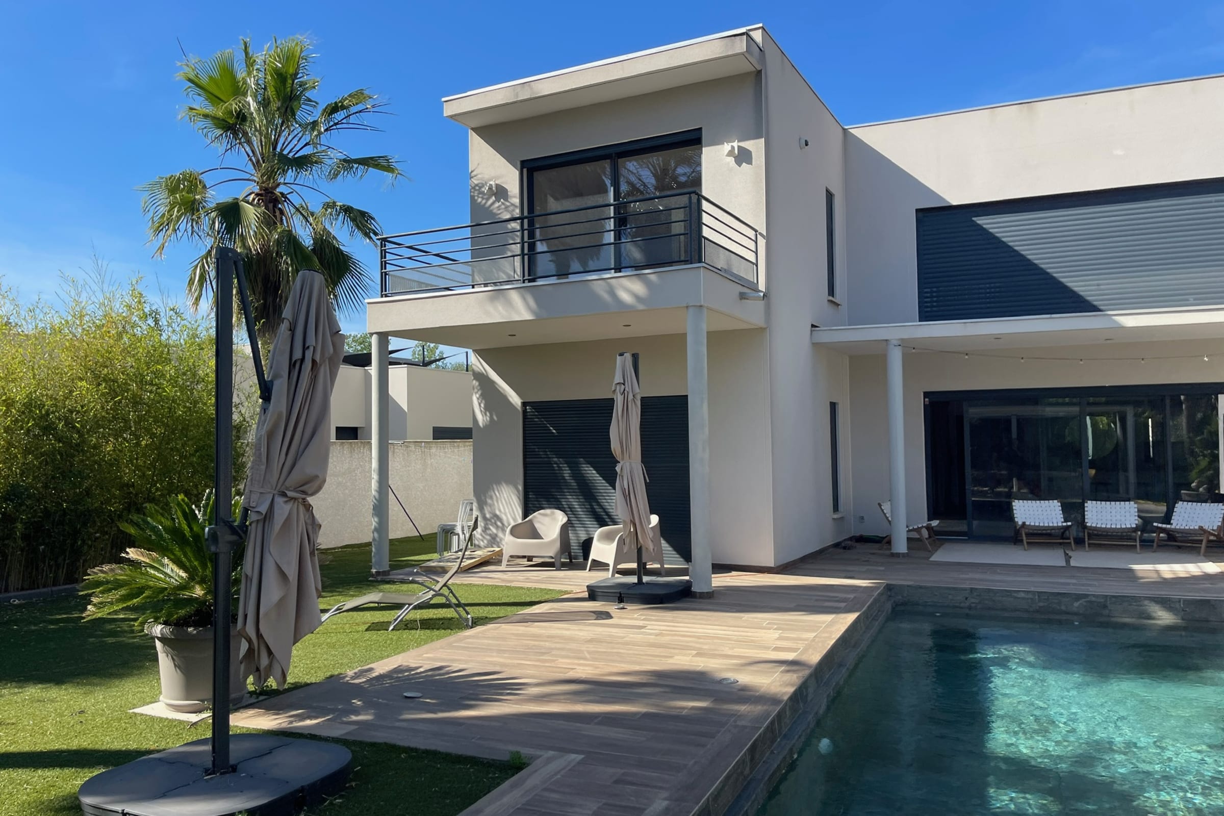 Maison Hermès embodies contemporary elegance just minutes from the Mediterranean. From the moment you enter, the cathedral-style living room impresses with its volume and natural light. The fully equipped modern kitchen opens onto an elegant veranda designed for generous gatherings. Spaces flow seamlessly between aesthetics, comfort and conviviality.