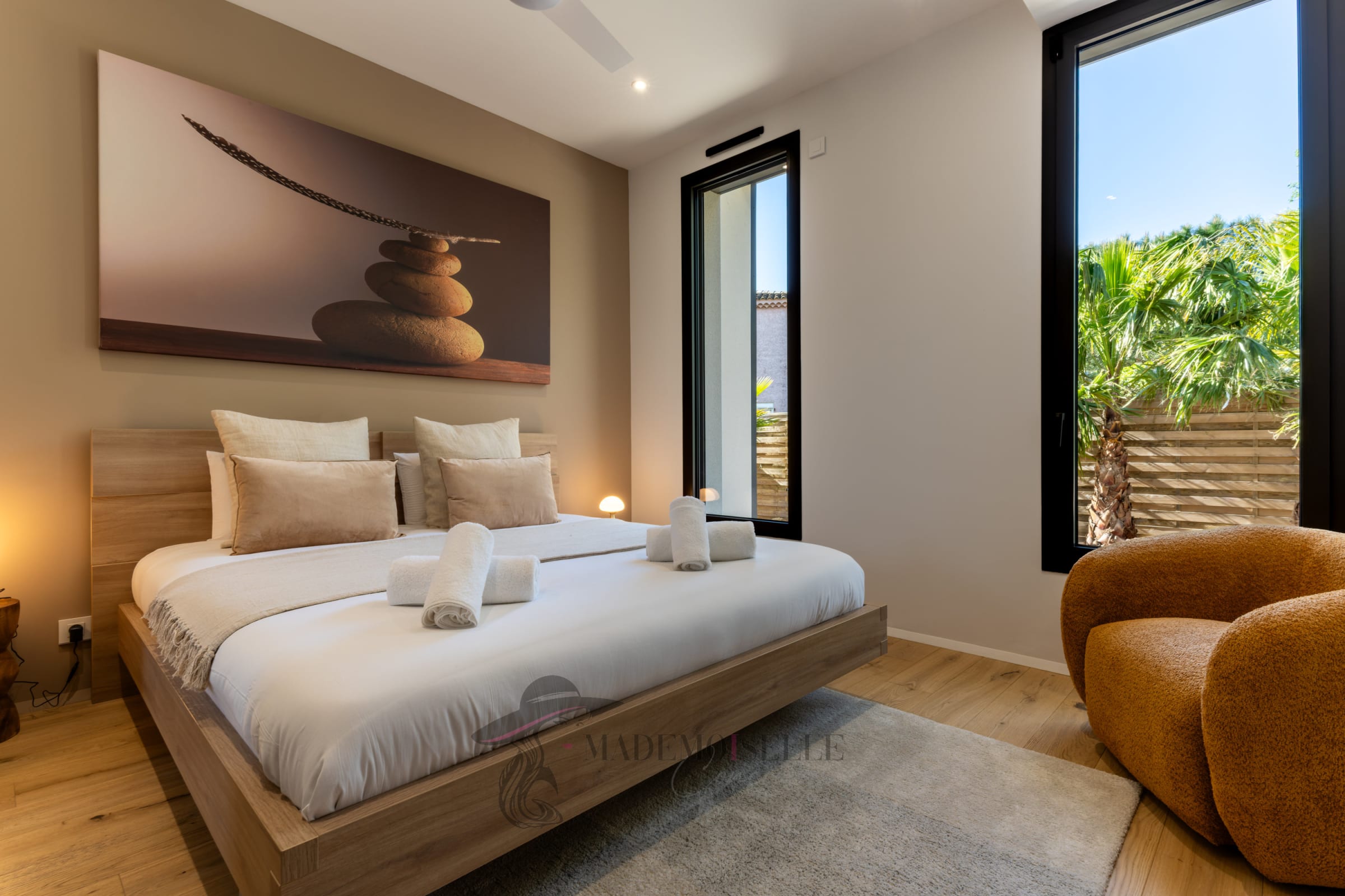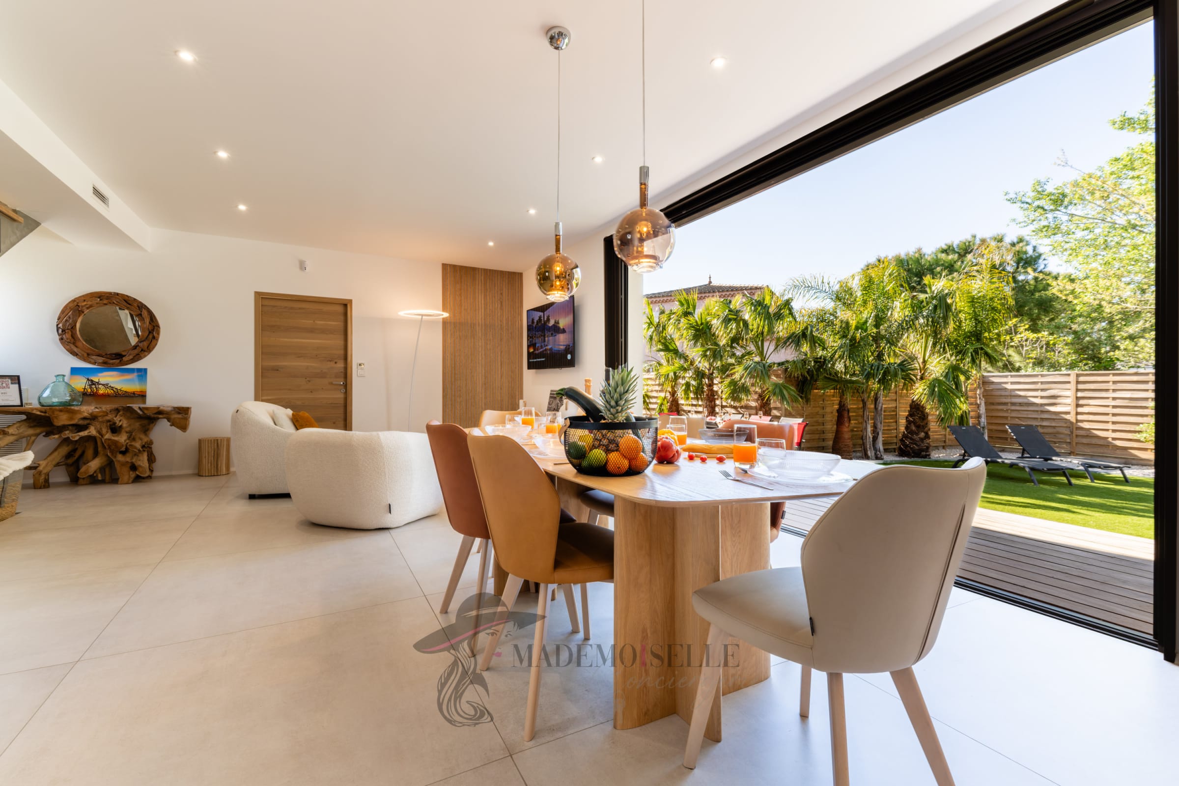 Nestled in a very quiet area of Grau d’Agde, the villa charms with its peaceful atmosphere, refined decoration and comfort. You immediately feel at home, in a place designed to relax, laugh and create meaningful memories together.