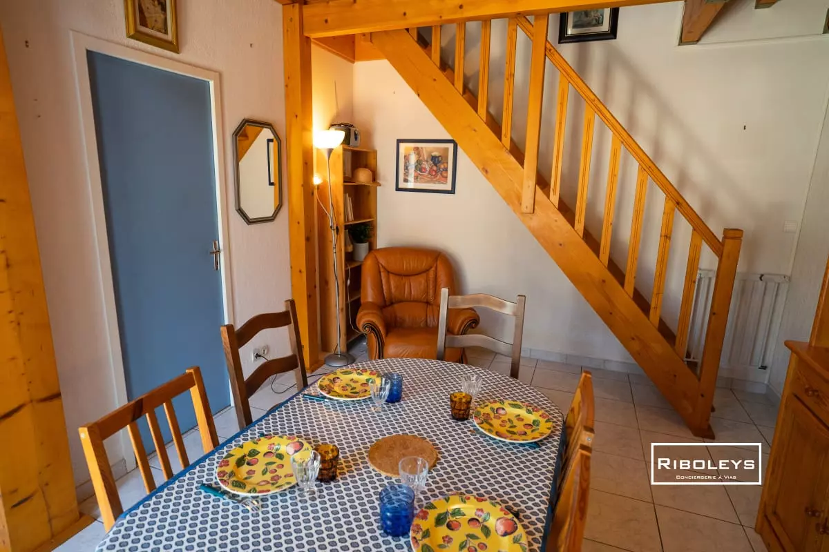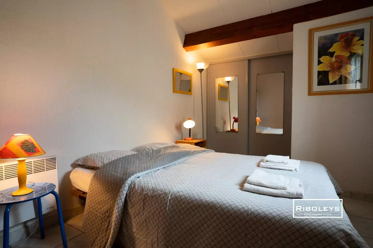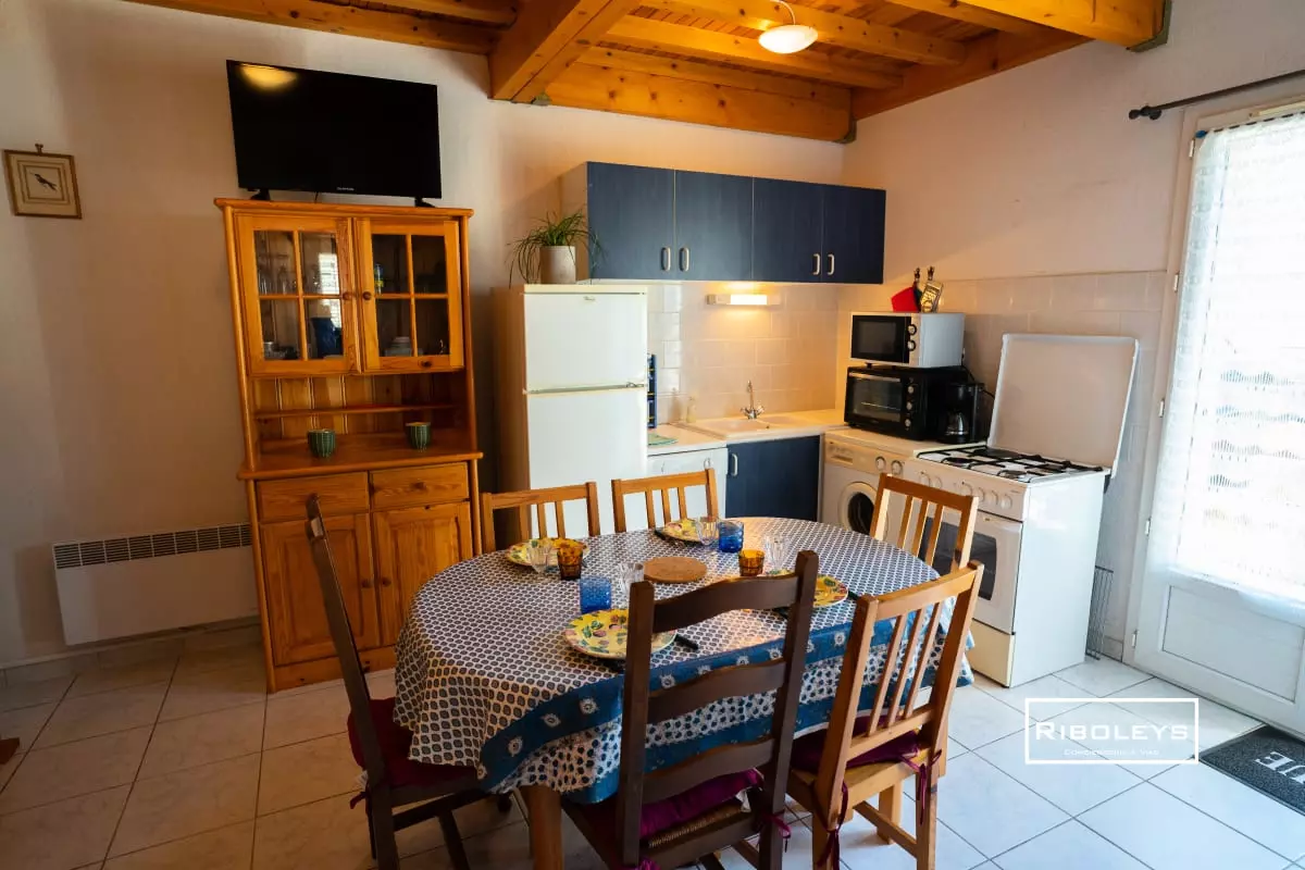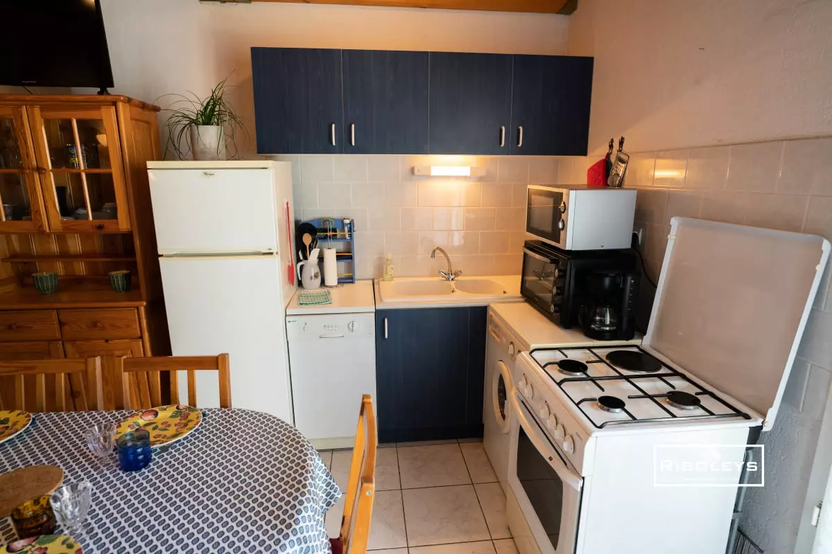 The air-conditioned accommodation is composed of a living room with a sofa bed, a dining table, a fitted kitchen (gas stove) and a bathroom with shower cubicle and toilet.