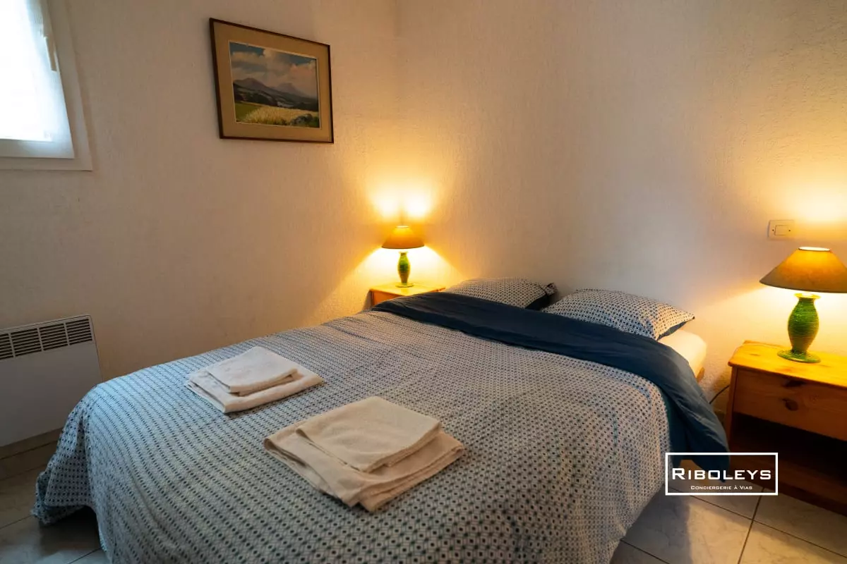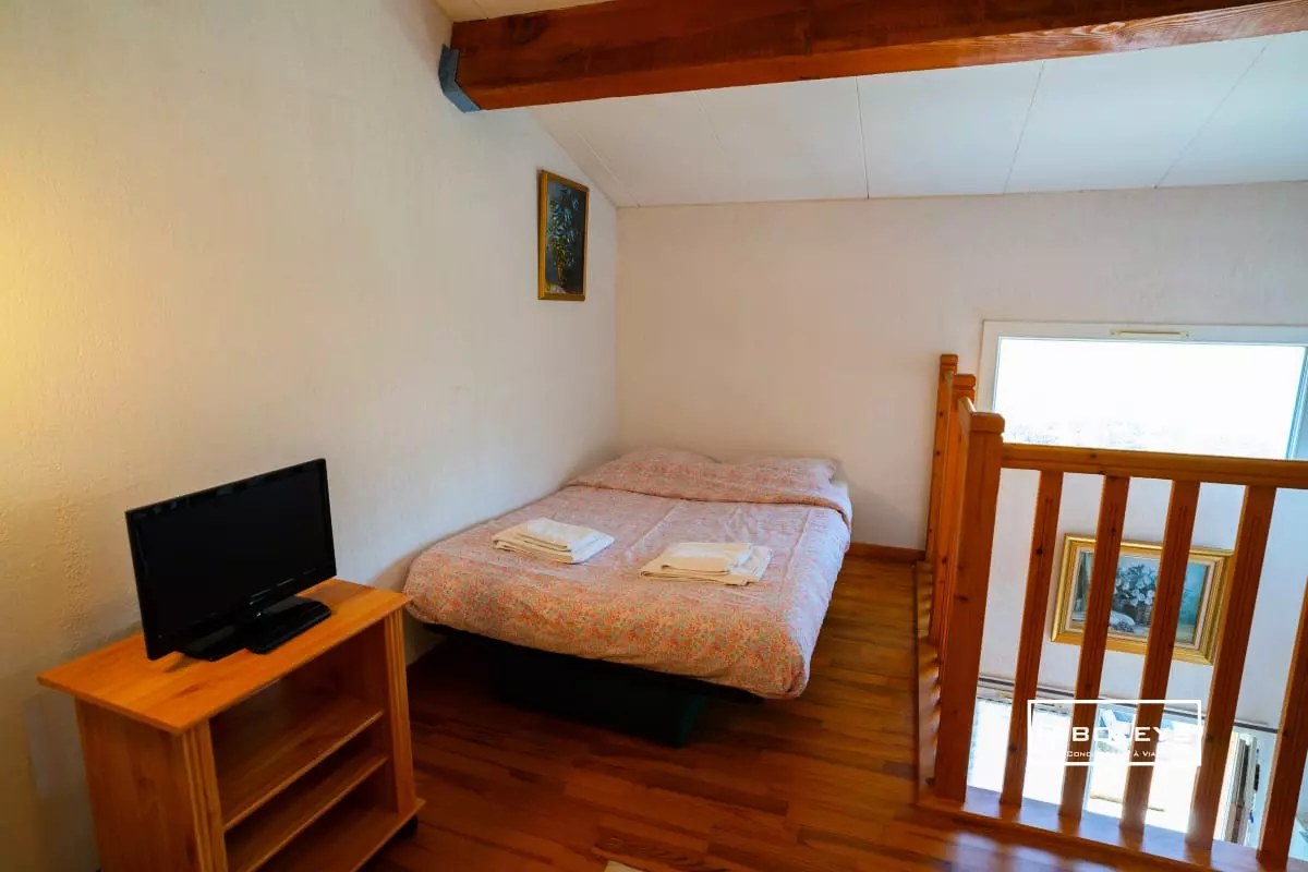 The accommodation has a bedroom on the ground floor with a double bed (140x190), a sofa bed in the living room (140x190) and a bedroom with a double bed (140x190) upstairs.