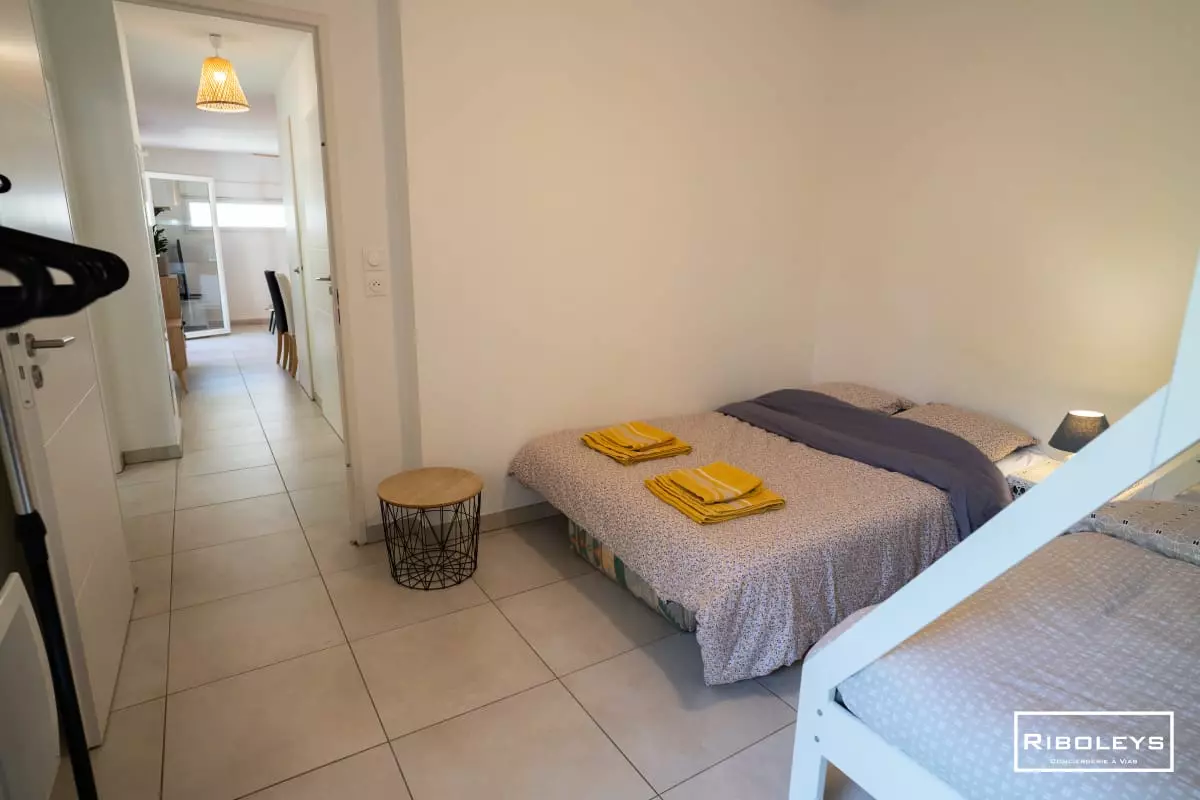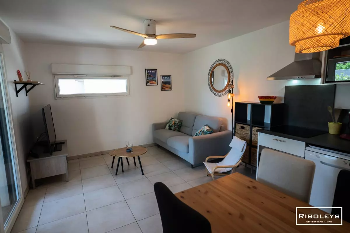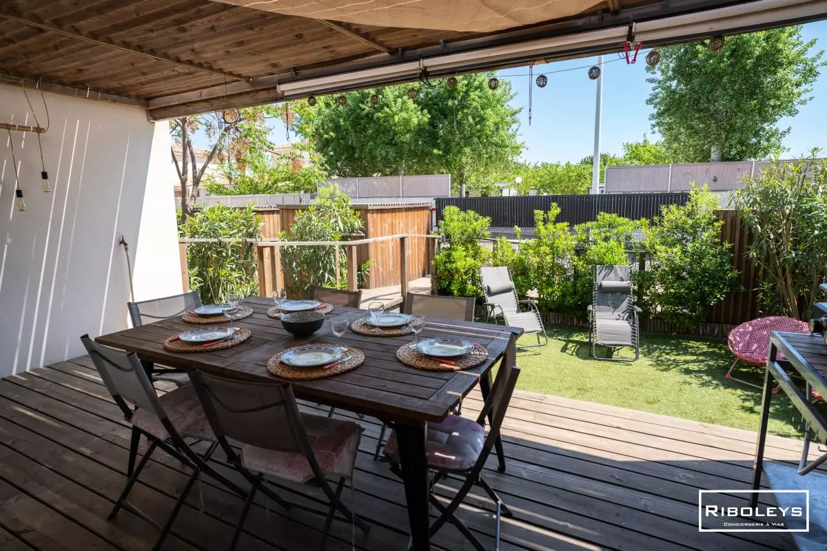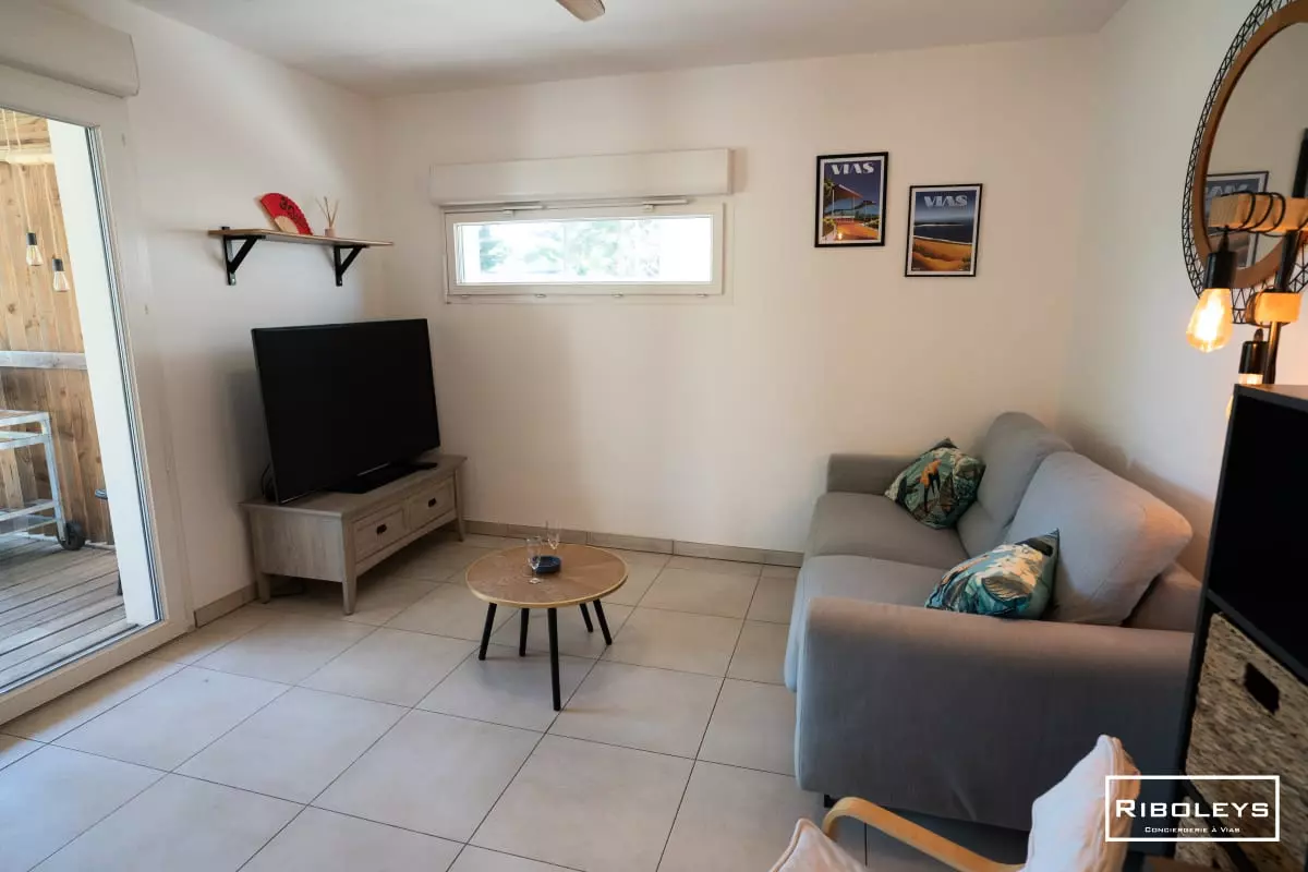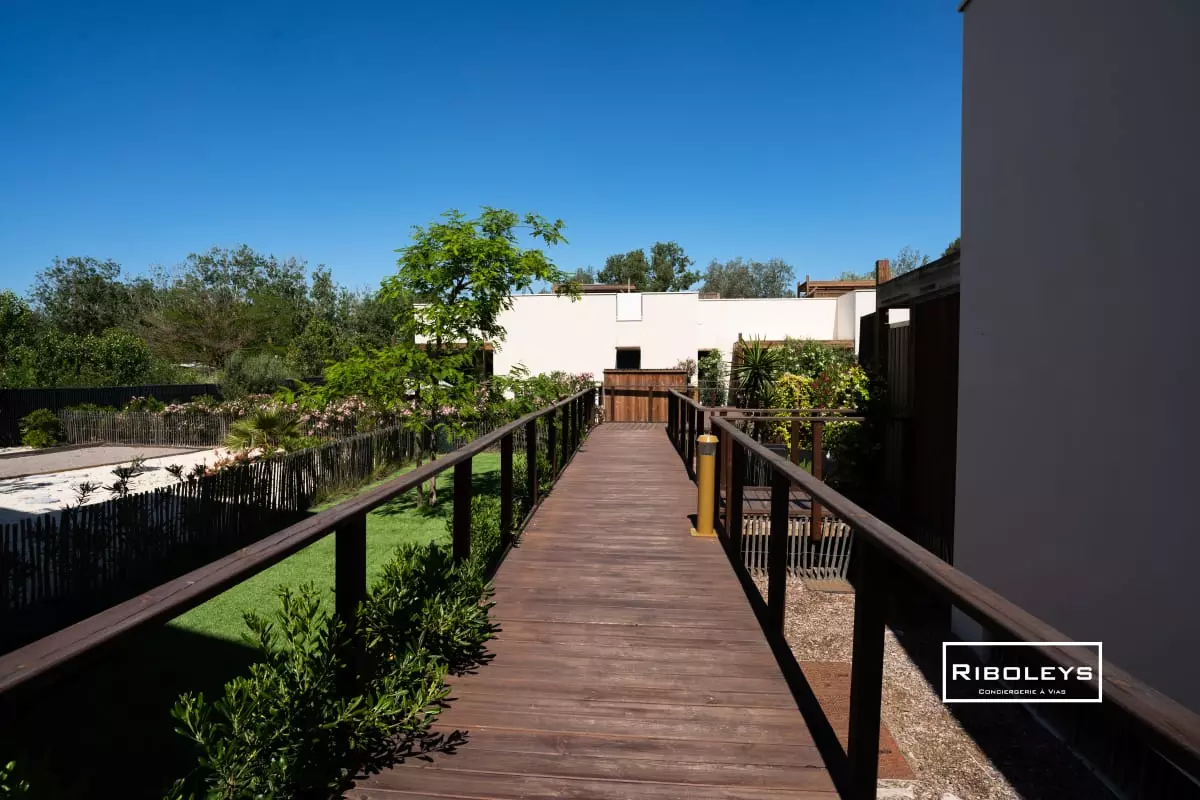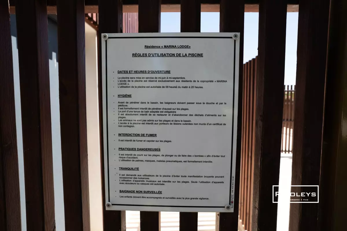 Nestled in the heart of the secure Marina Lodge residence, this charming 52 m² villa is fully equipped for a comfortable stay. It has two bedrooms: one with a 160 cm double bed, the other with a 140 cm double bed, a 140 cm sofa bed and a single bunk bed, ideal for families or stays with friends. Enjoy its large shaded wooden terrace and its private 96 m² garden,.. The shared swimming pool is accessible from June 1st to September 30th. Only 400 m from La Farinette beach and the lively shops of Vias Plage, it is the perfect setting for a peaceful vacation.