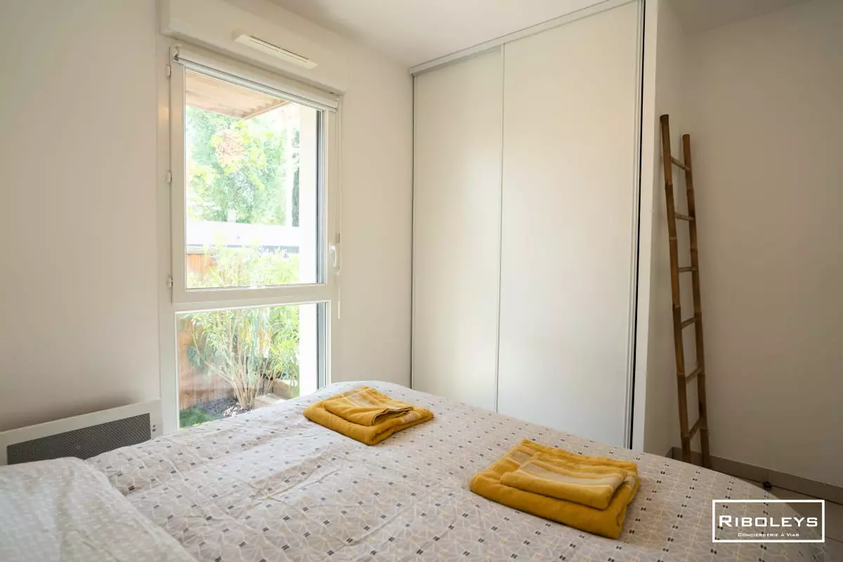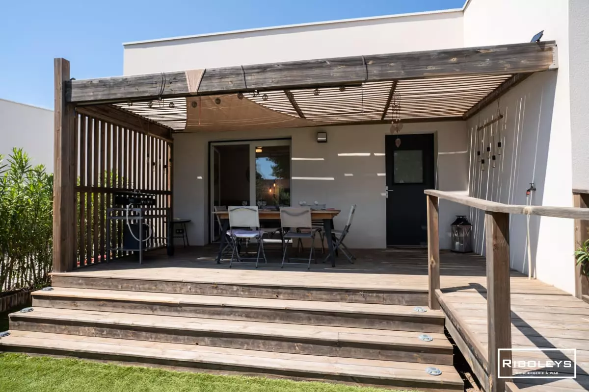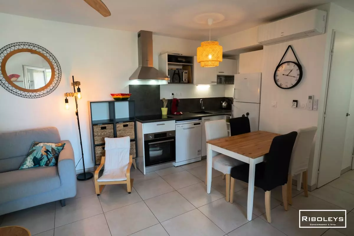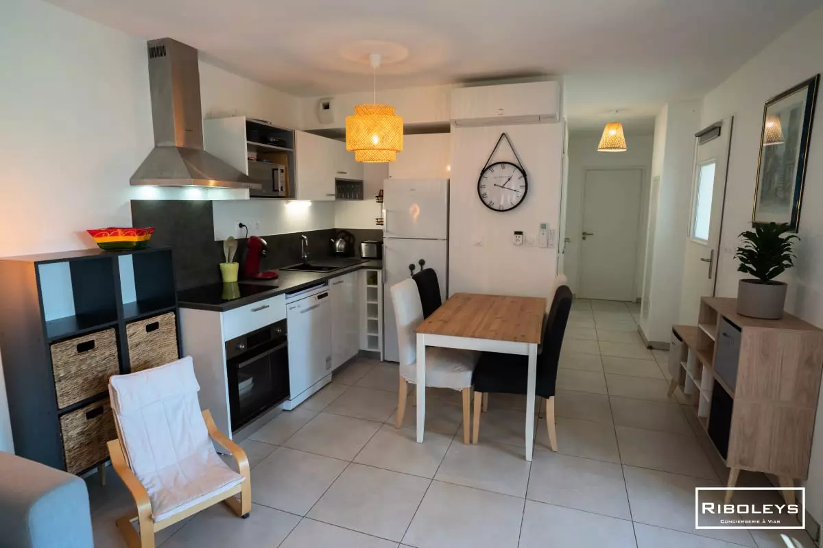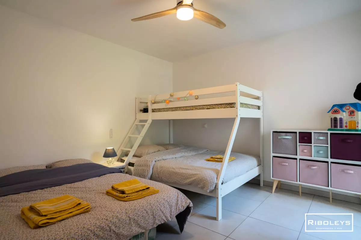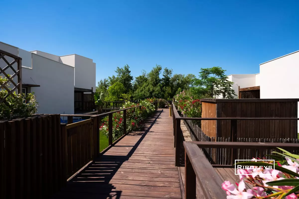 Nestled in the heart of the secure Marina Lodge residence, this charming 52 m² villa is fully equipped for a comfortable stay. It has two bedrooms: one with a 160 cm double bed, the other with a 140 cm double bed, a 140 cm sofa bed and a single bunk bed, ideal for families or stays with friends. Enjoy its large shaded wooden terrace and its private 96 m² garden,.. The shared swimming pool is accessible from June 1st to September 30th. Only 400 m from La Farinette beach and the lively shops of Vias Plage, it is the perfect setting for a peaceful vacation.